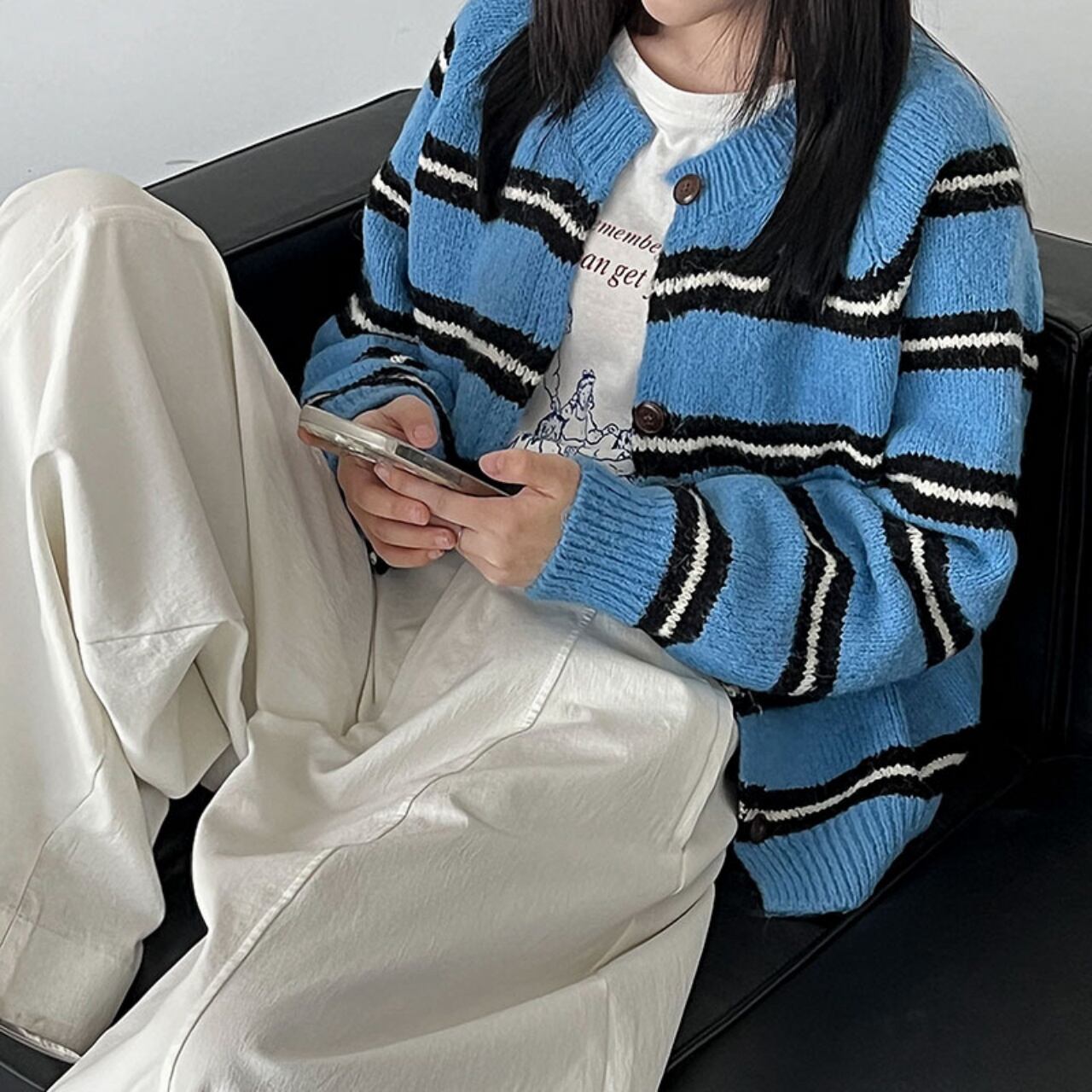 落ち着いた配色ボーダーで、大人カジュアルをシックに格上げ。