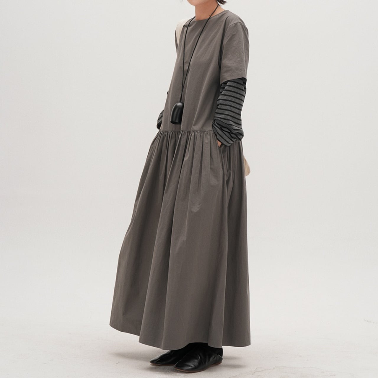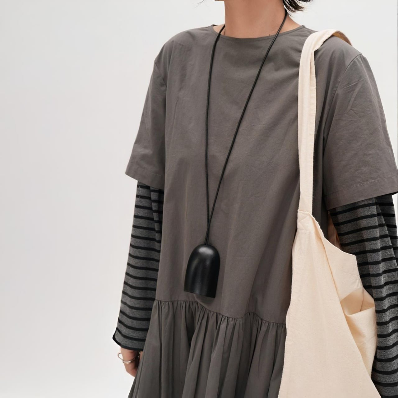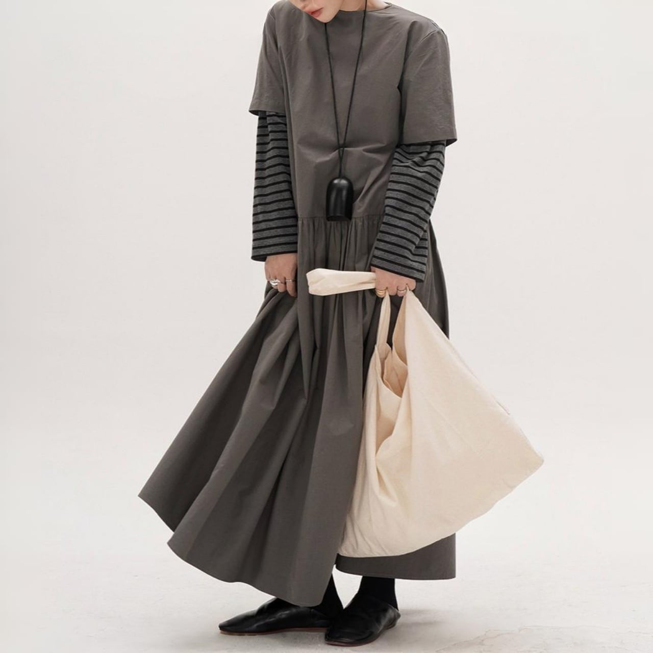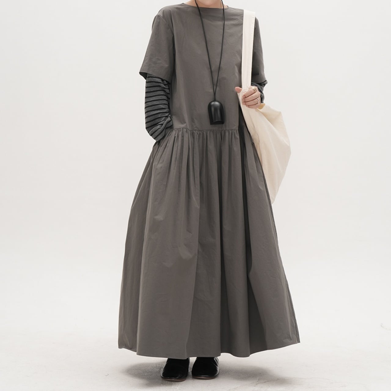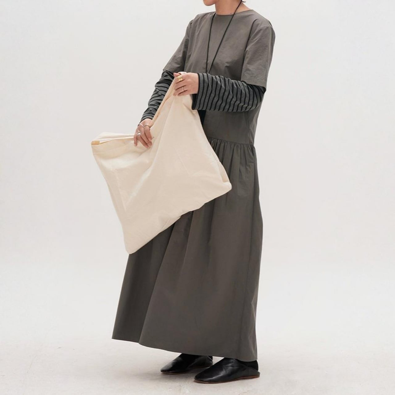 落ち着いた色味で上品に見せつつ、ゆったりシルエットで快適◎
