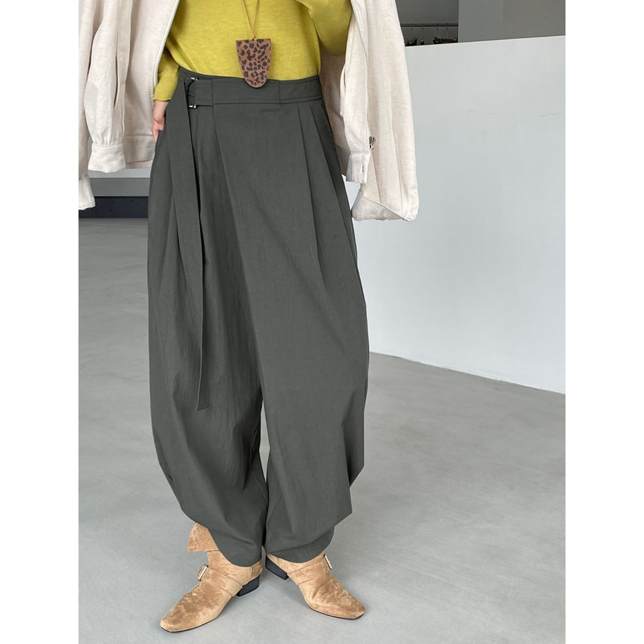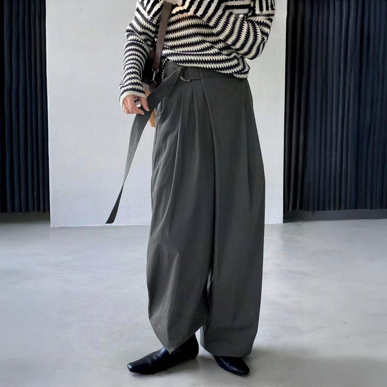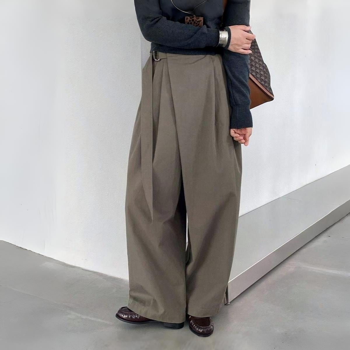 Dカンベルトタックデザインハイウエストワイドパンツ A01841
