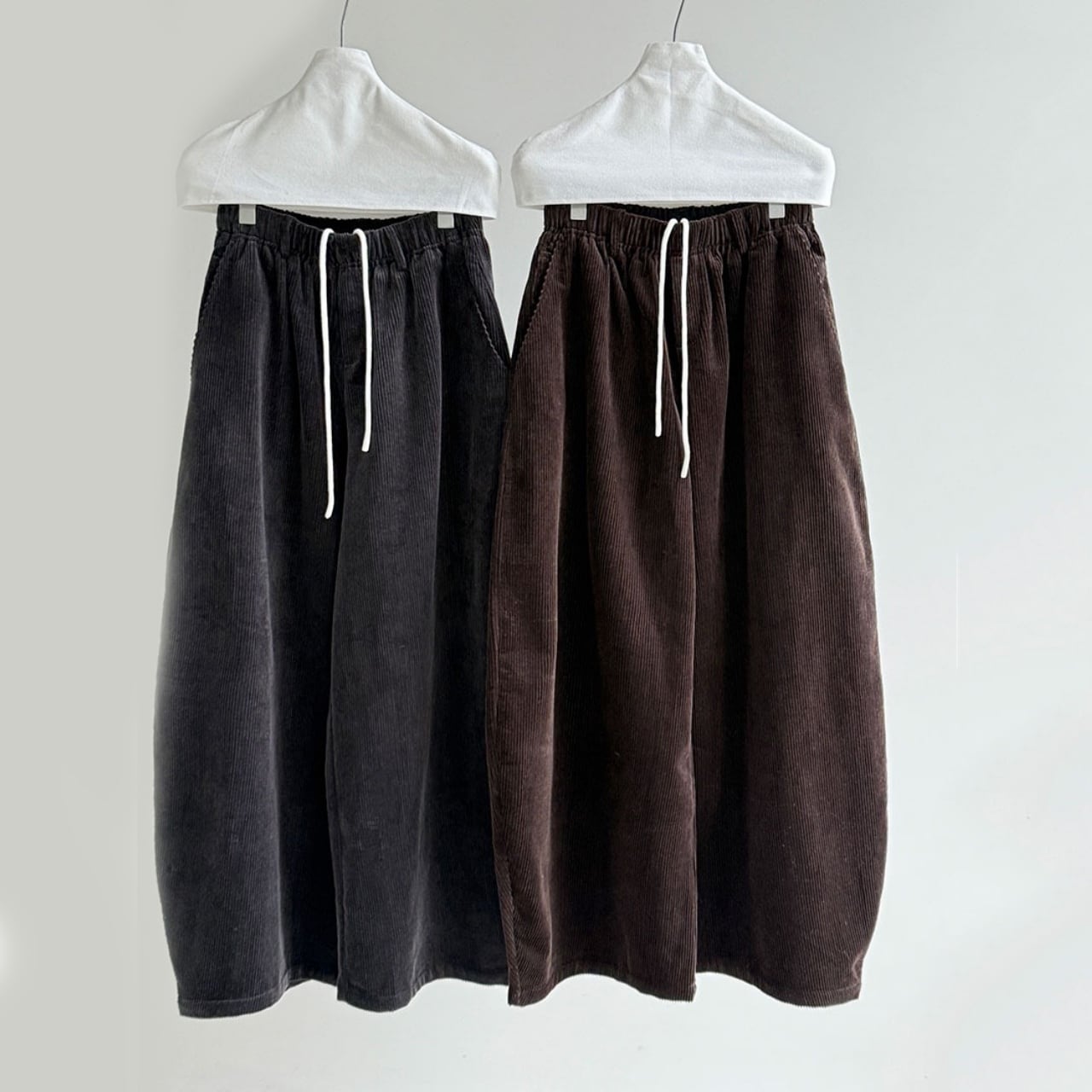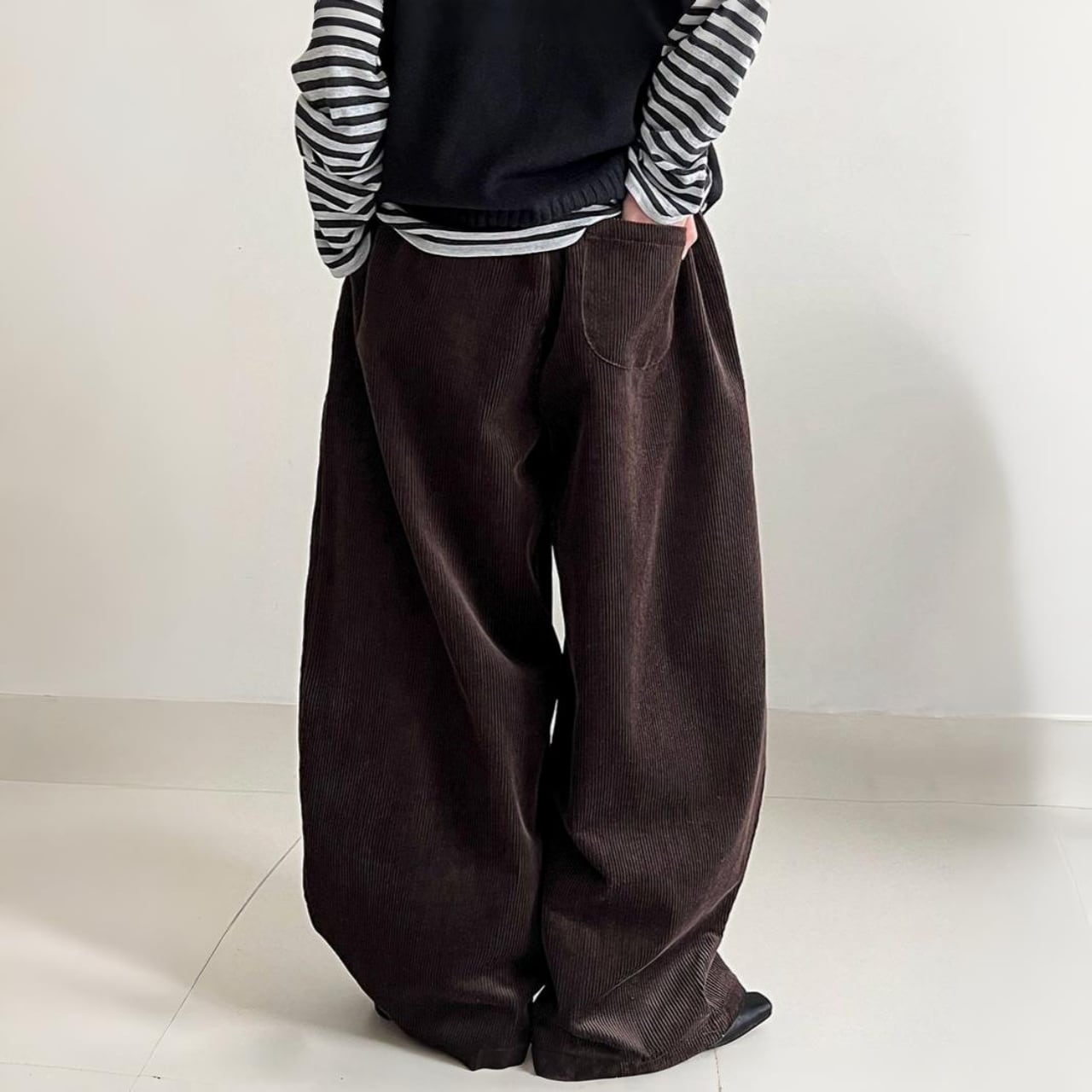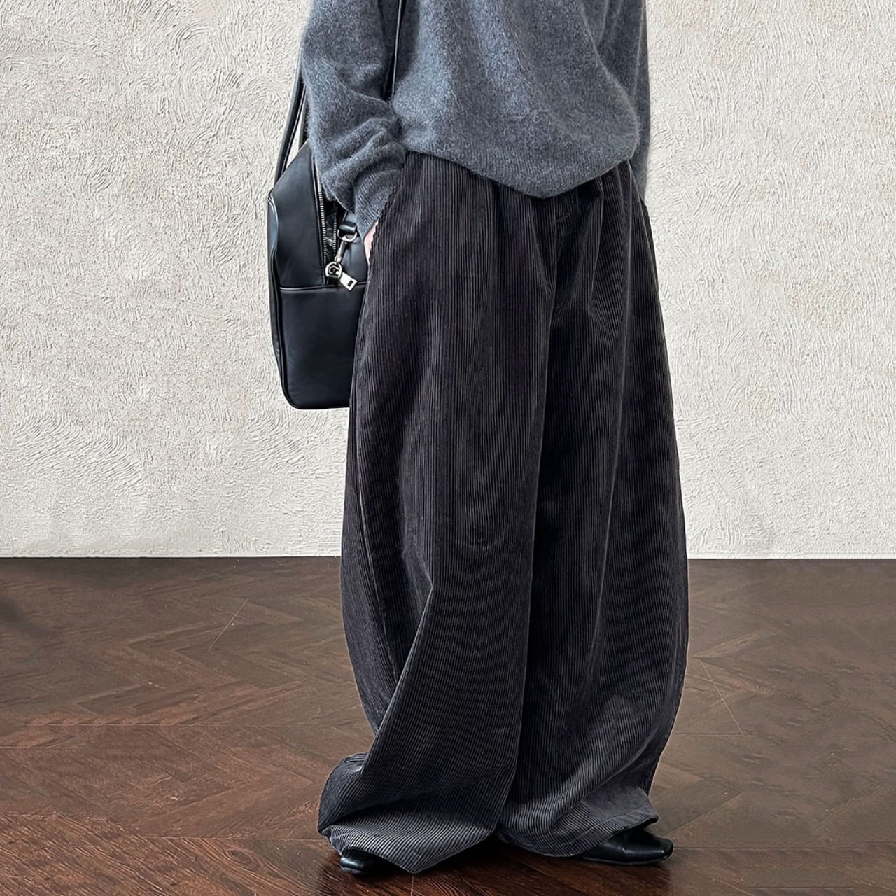 ふんわり暖かく、秋冬にぴったりのバギーパンツ。