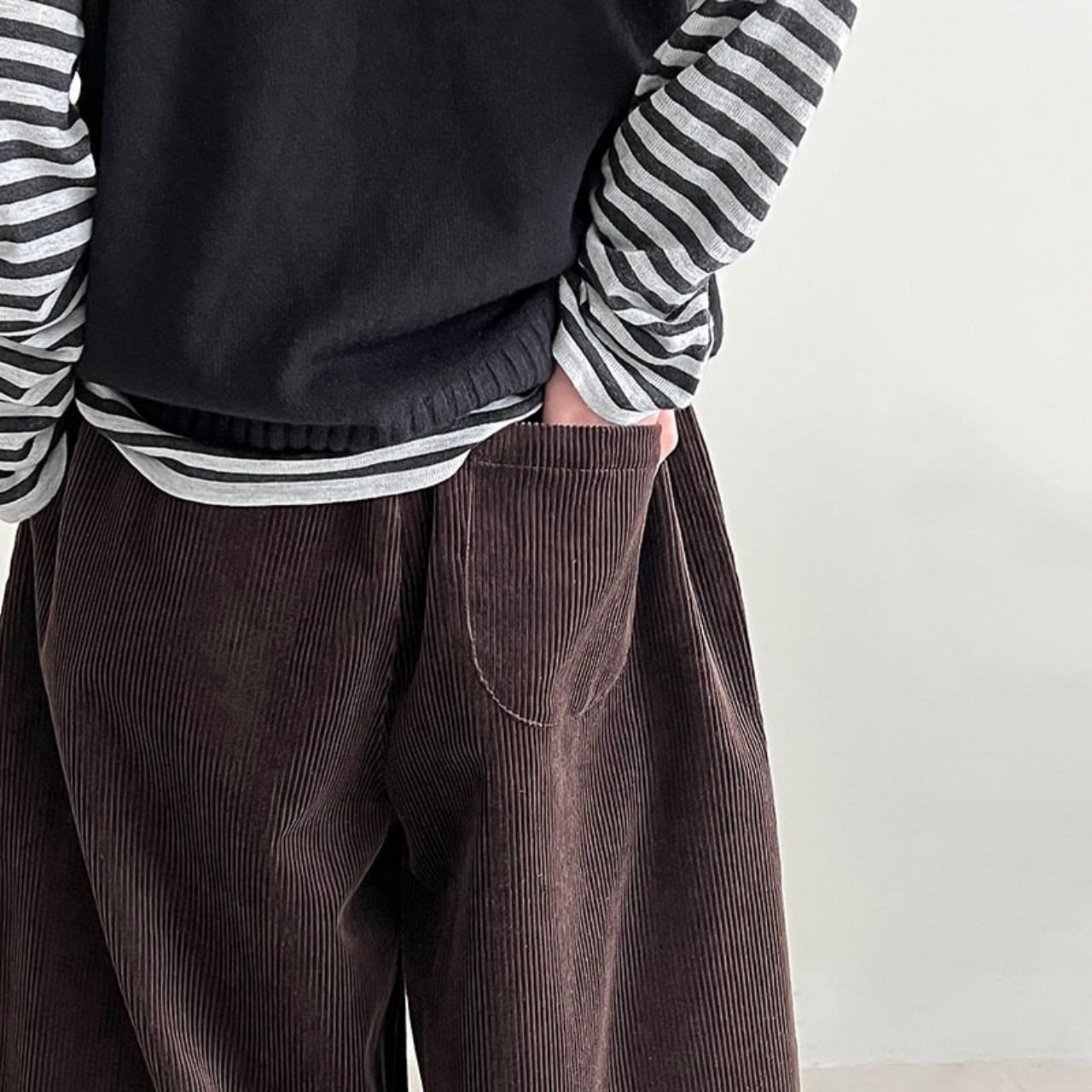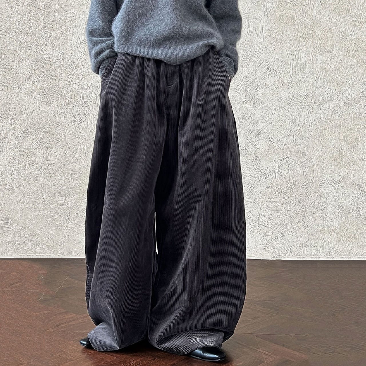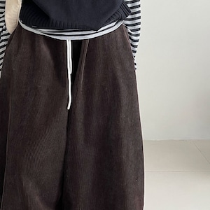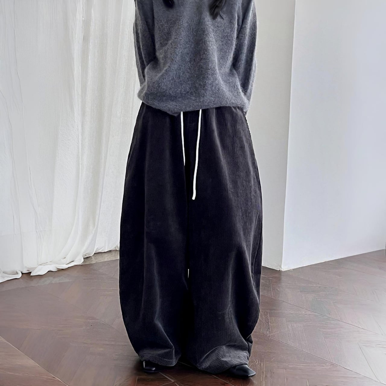 ふんわり暖かく、秋冬にぴったりのバギーパンツ。