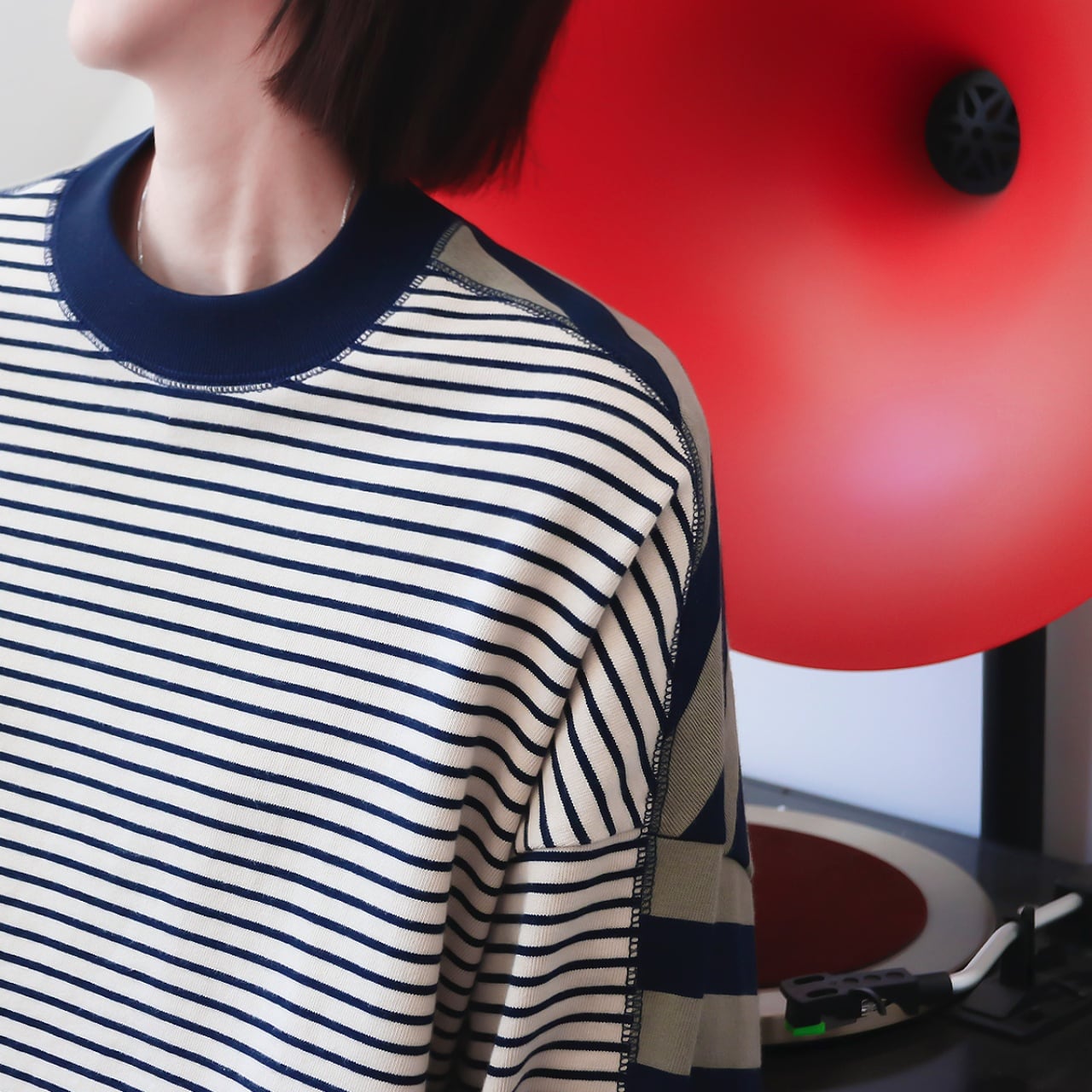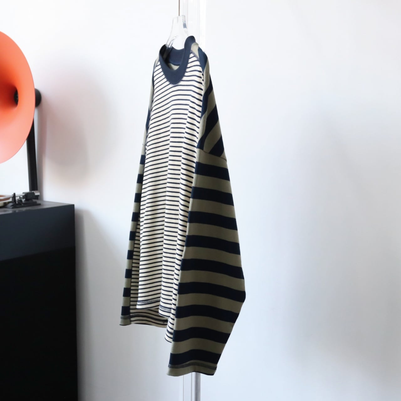 フロントは細ボーダー、バックは太ボーダーでこなれ感を演出。