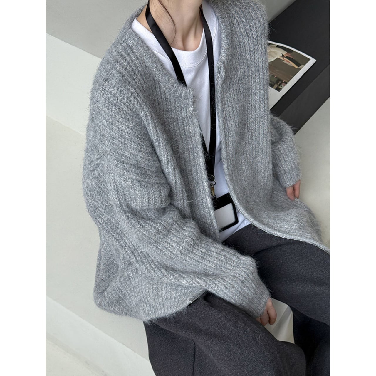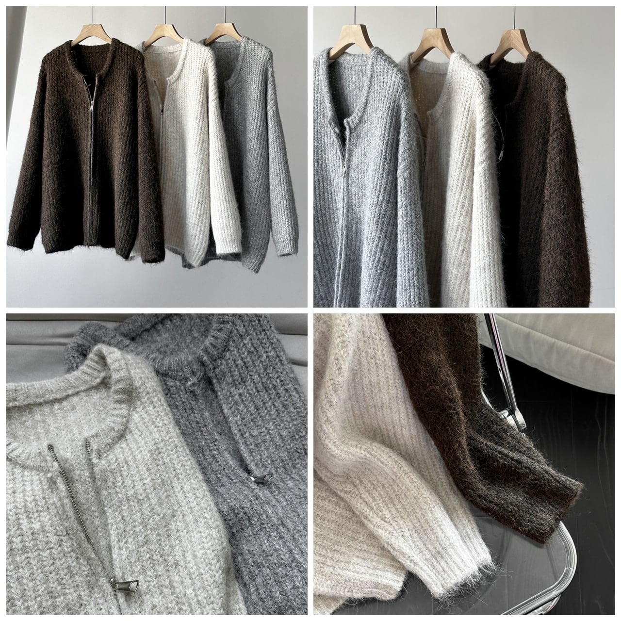 シャギーニットジップアップカーディガン A01854