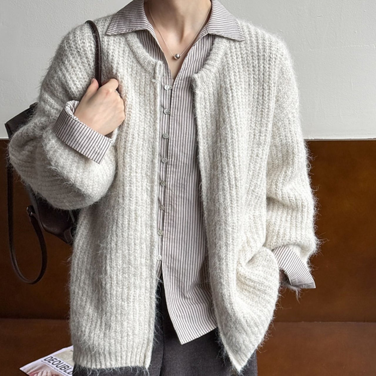 毛足の長いシャギーが、羽織るだけで立体感と抜け感をプラス。