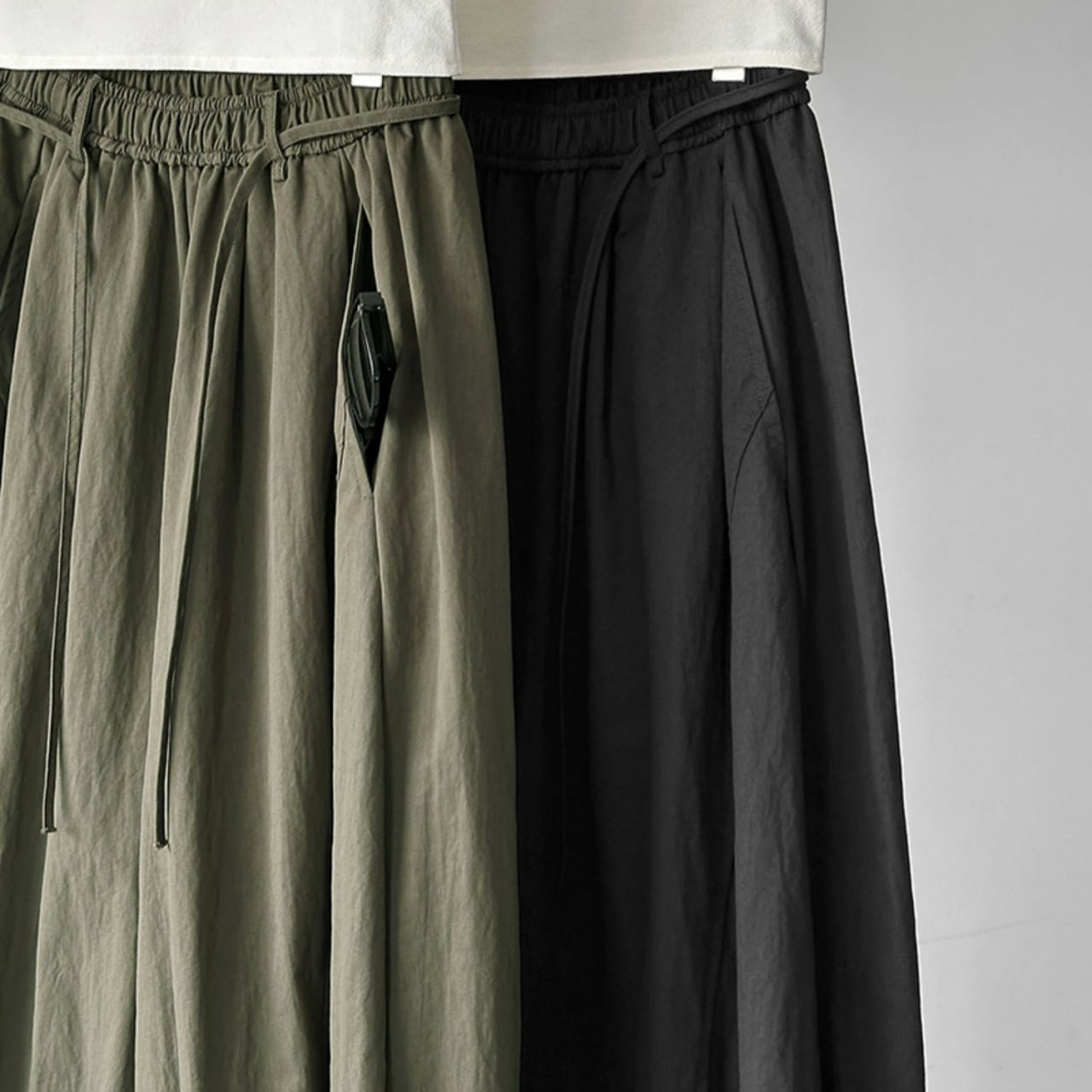 ウエストと裾のドローコードで、シルエットを自在にアレンジ。