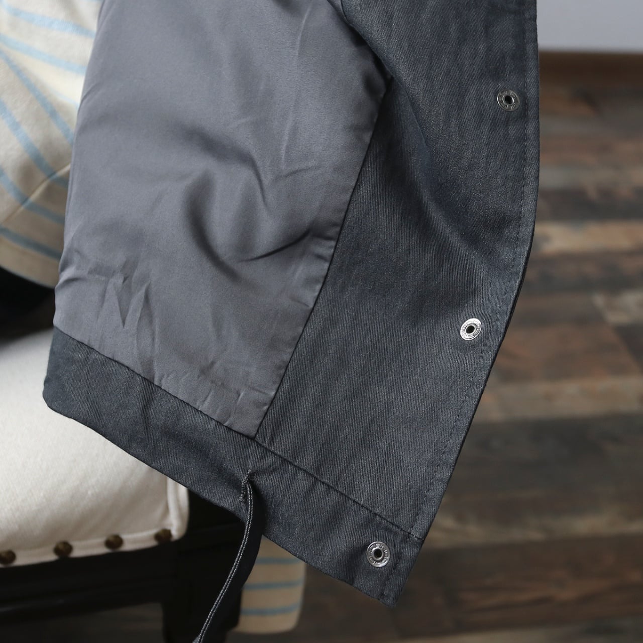 スナップボタンで着脱もスムーズ、裾ドロストでシルエット調整も自在。