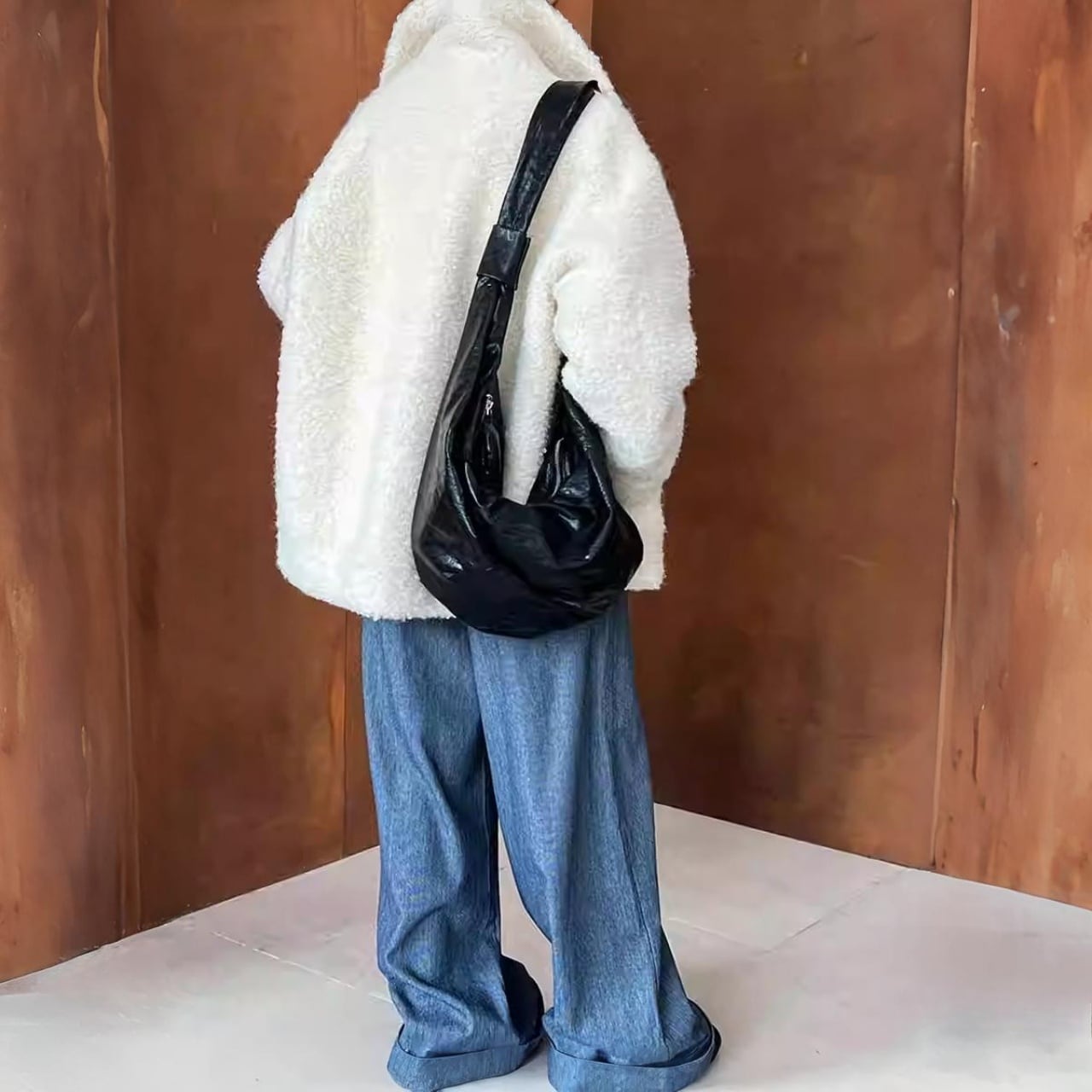 ゆったりオーバーサイズだから、厚手のニットとの重ね着もノンストレス。