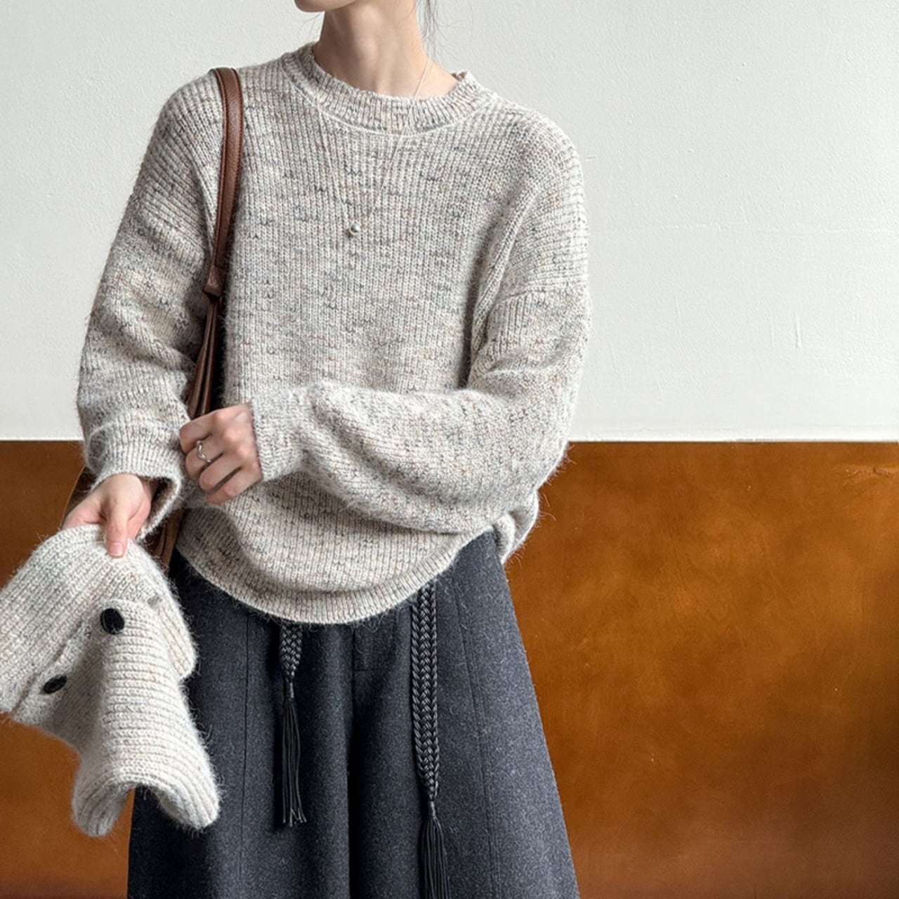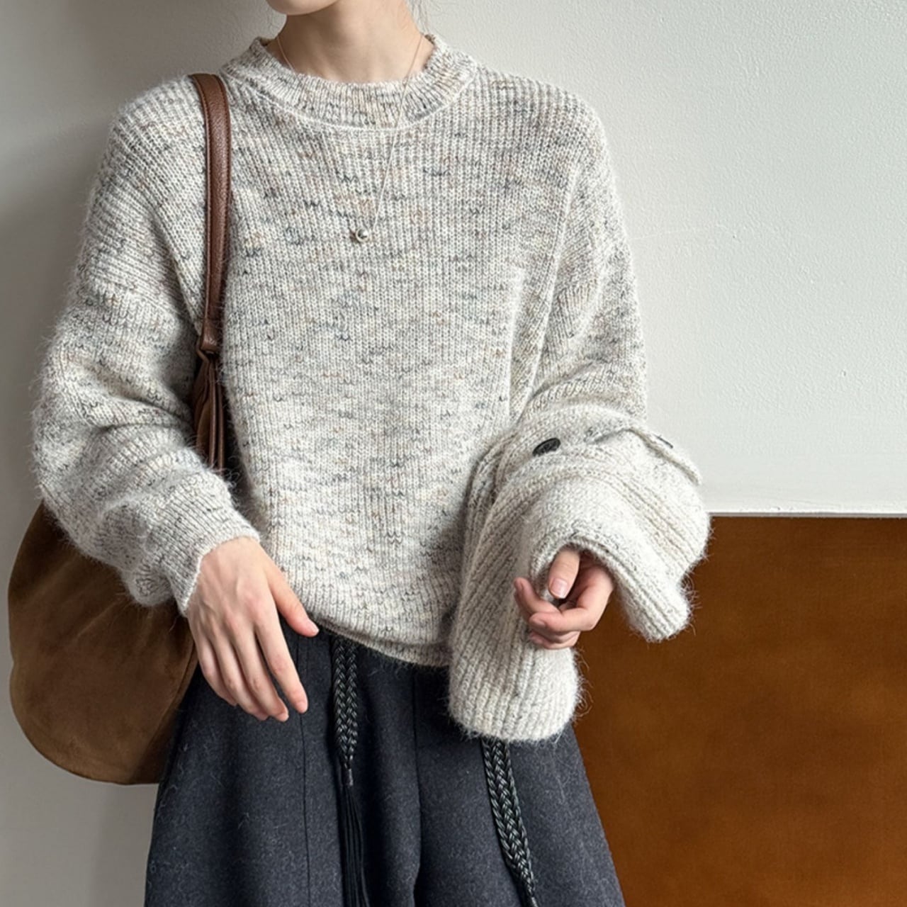 ミックスカラーのメランジで冬コーデに温かみをプラス。