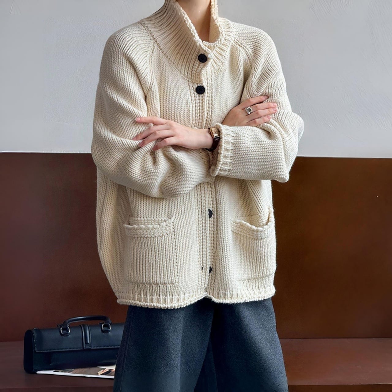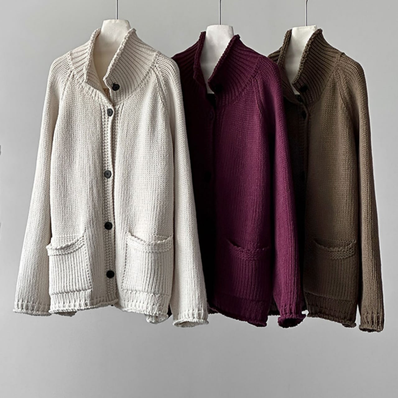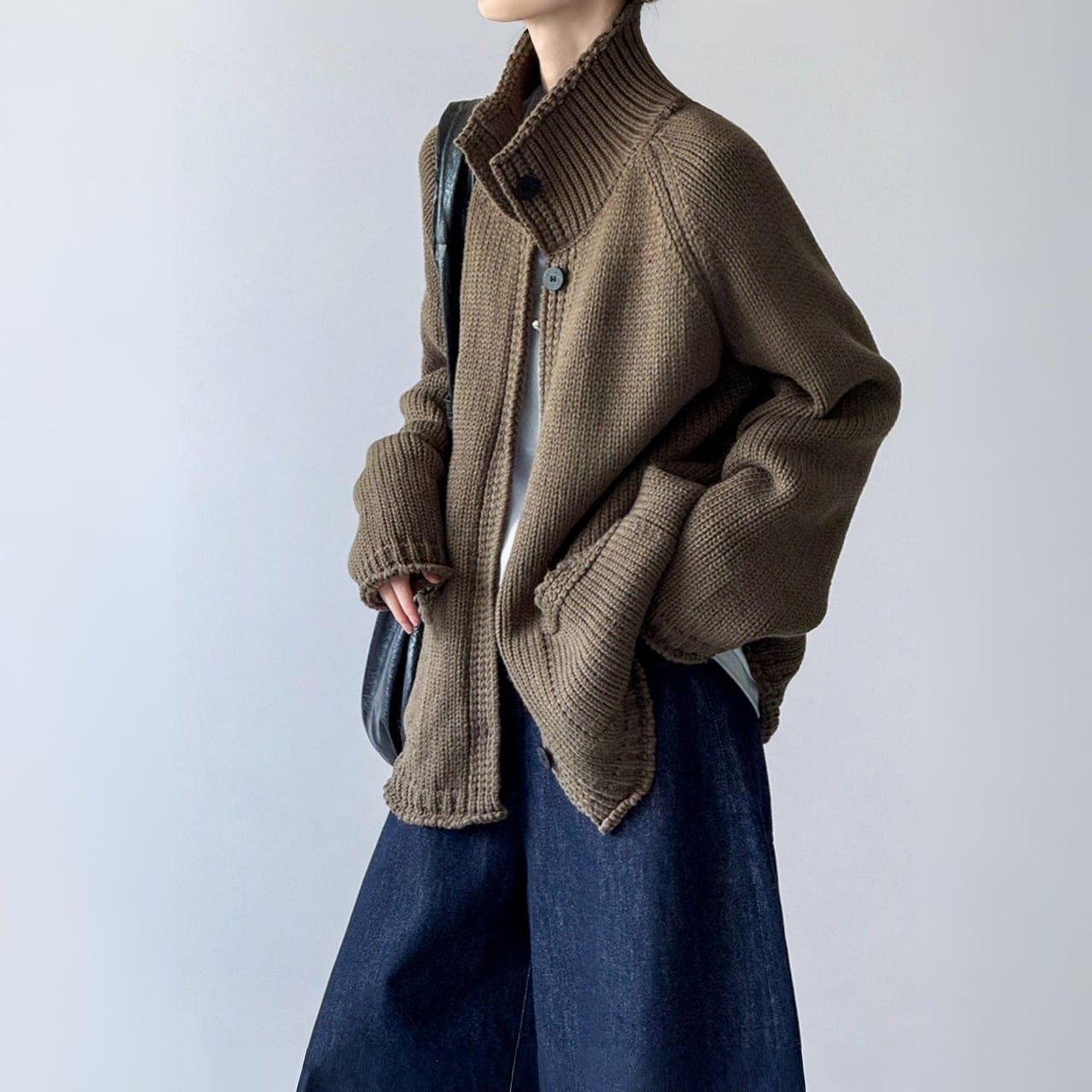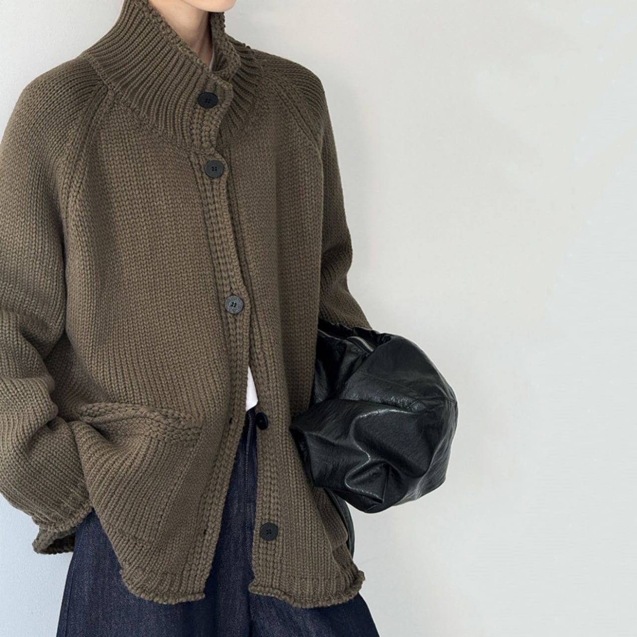 スタンドカラーチャンキーニットカーディガン A01892