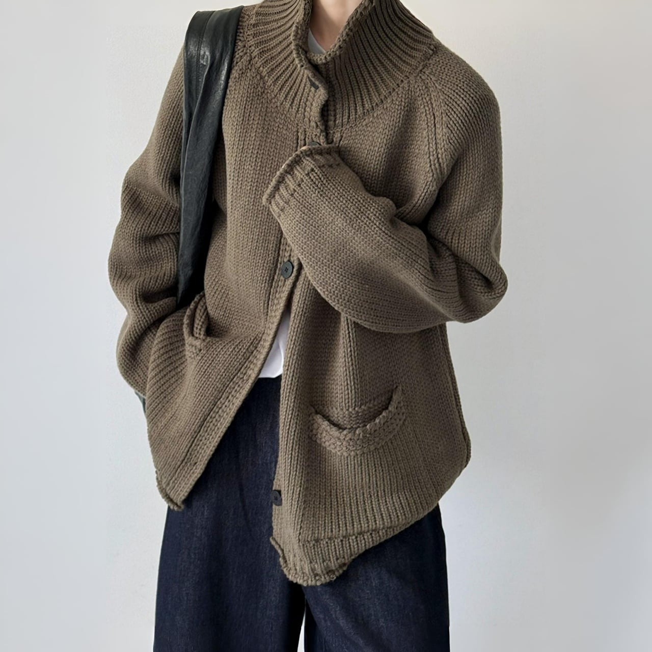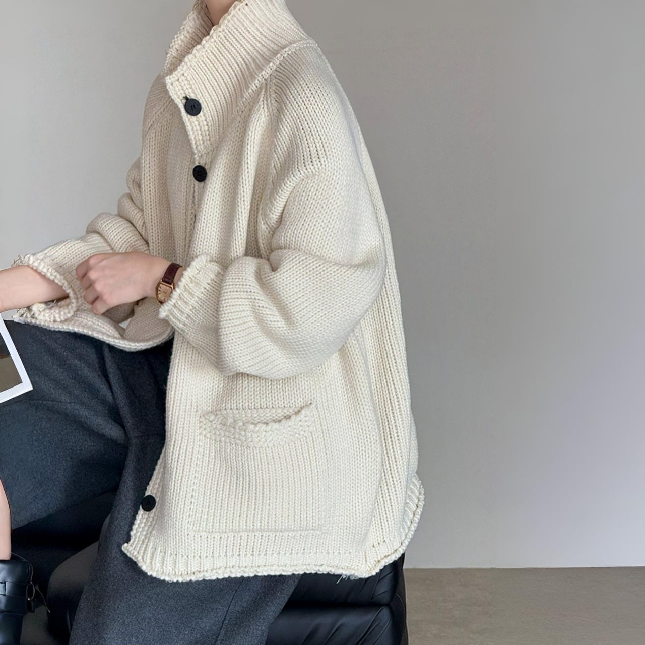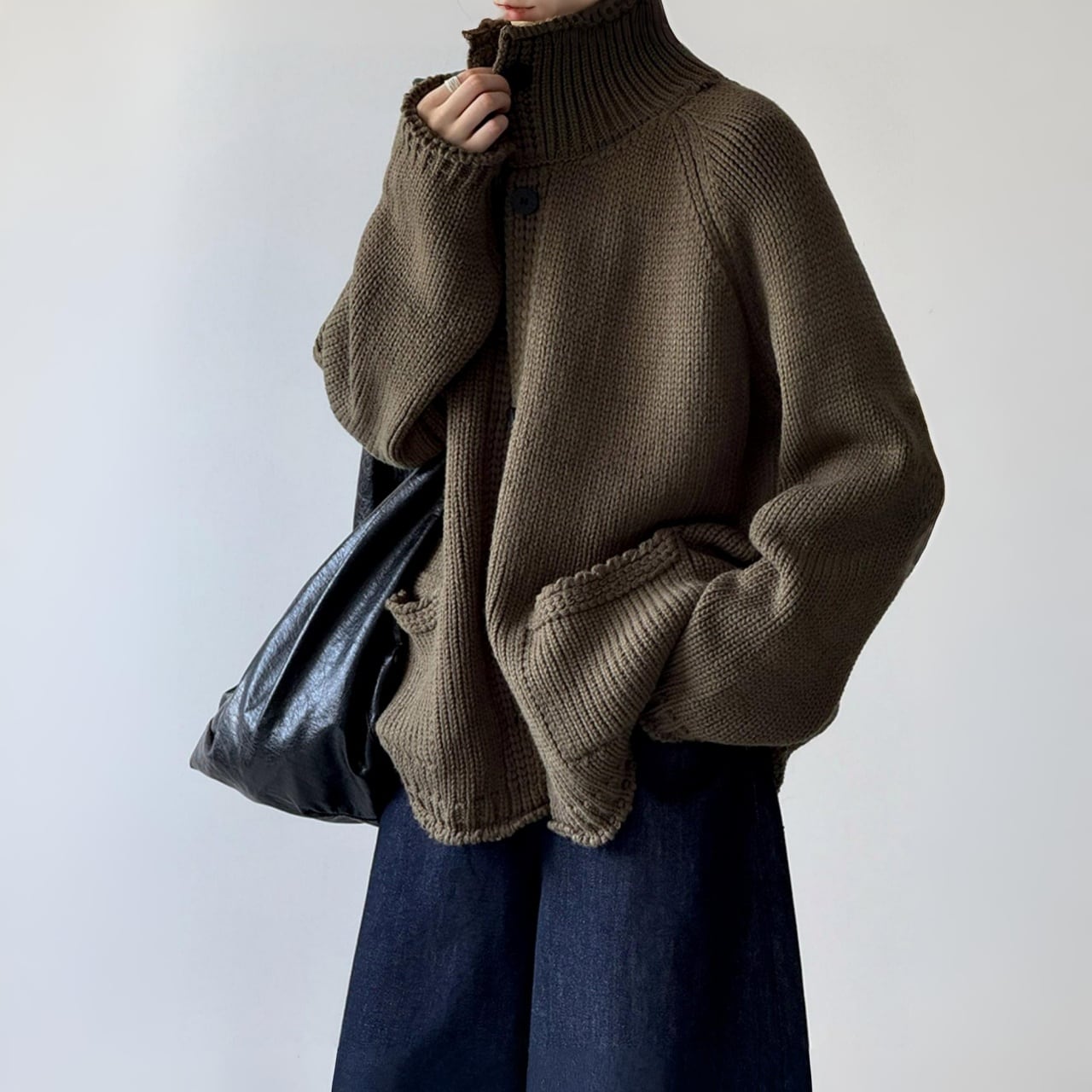 スタンドカラーチャンキーニットカーディガン A01892