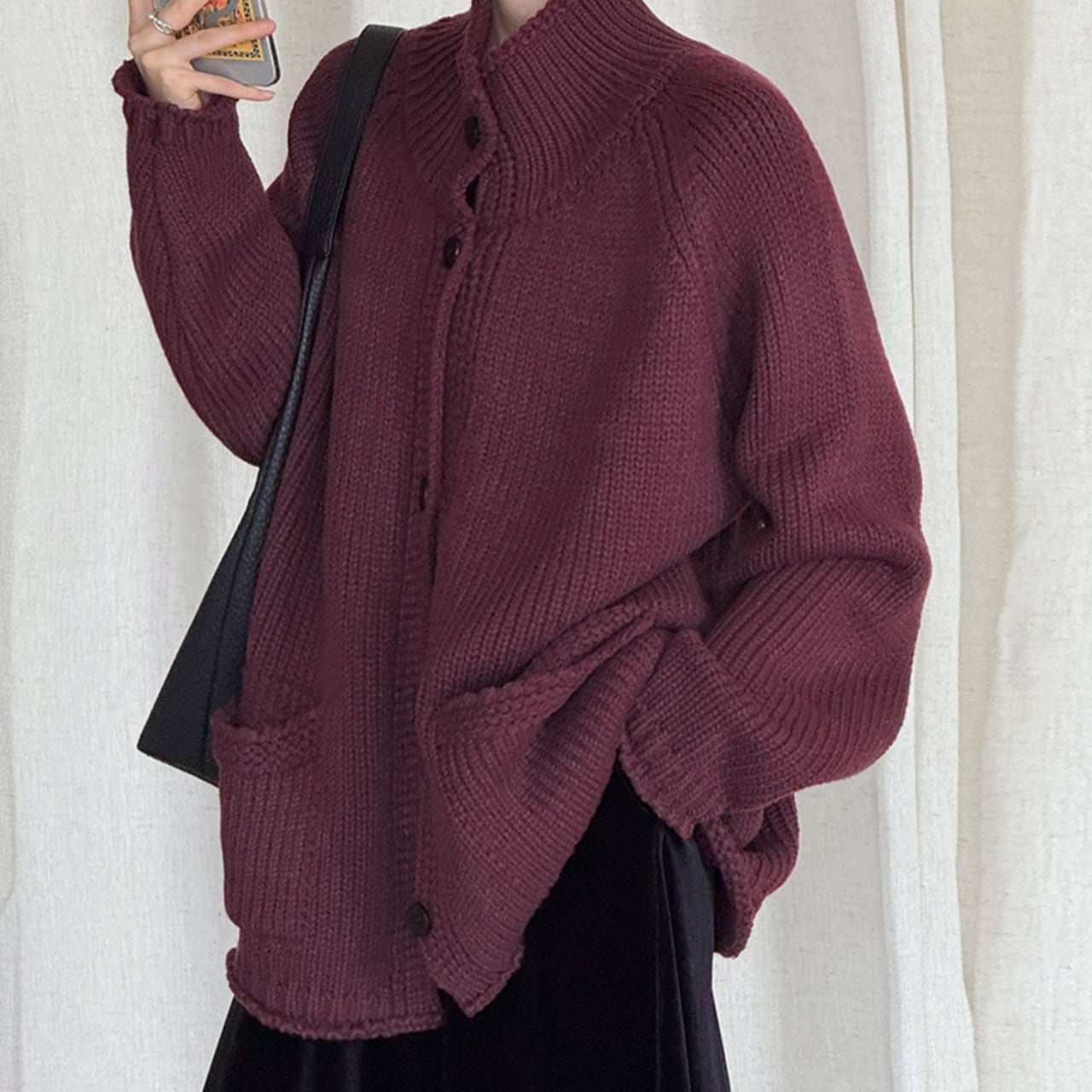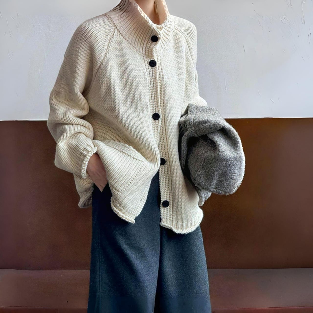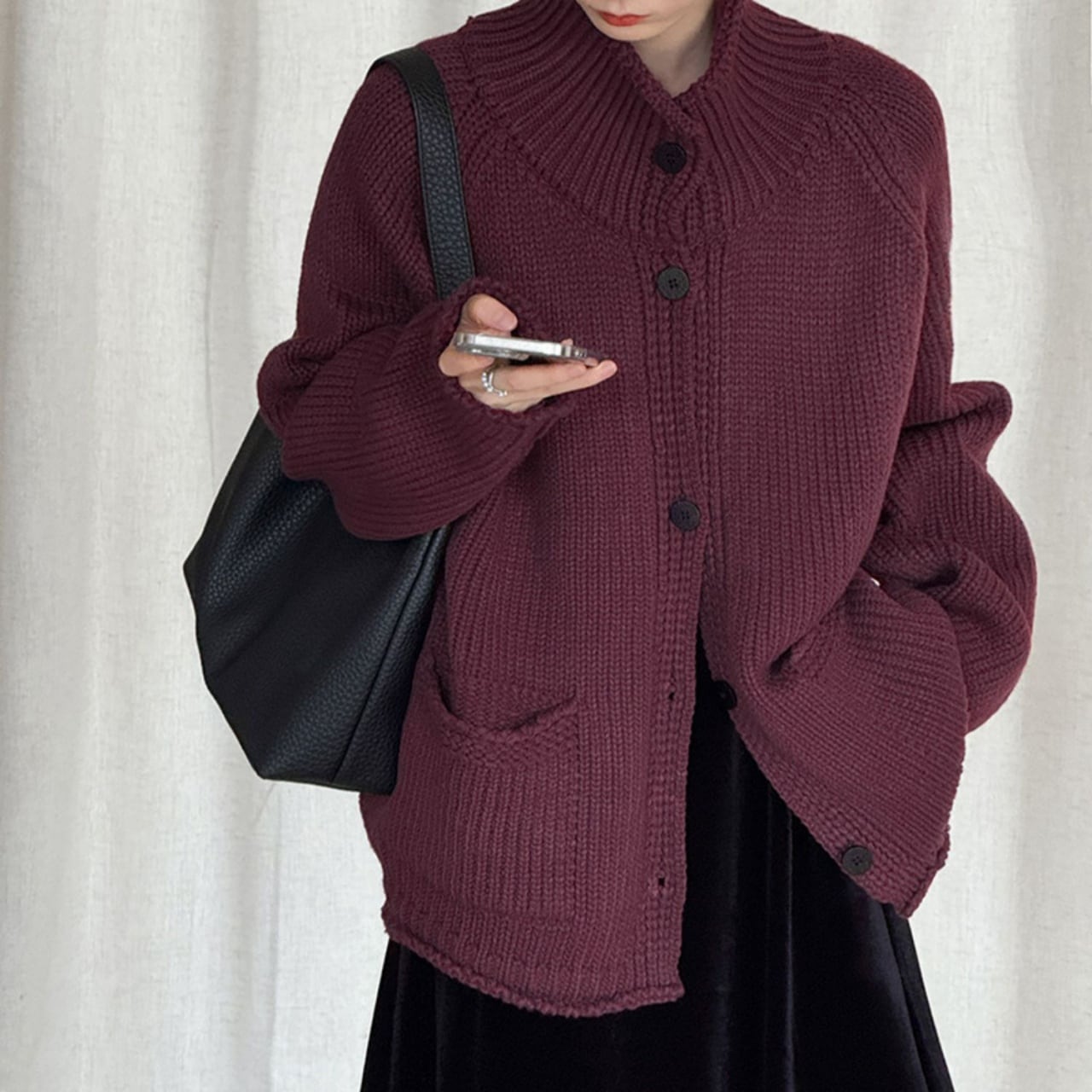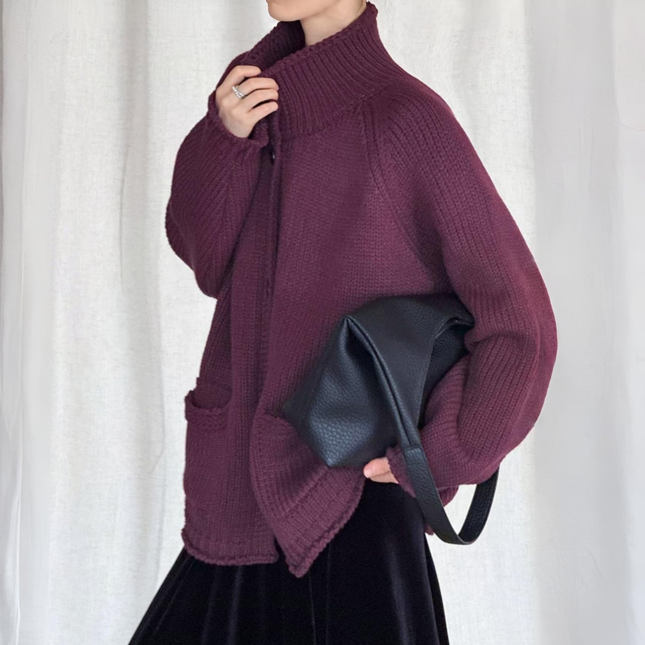 スタンドカラーチャンキーニットカーディガン A01892
