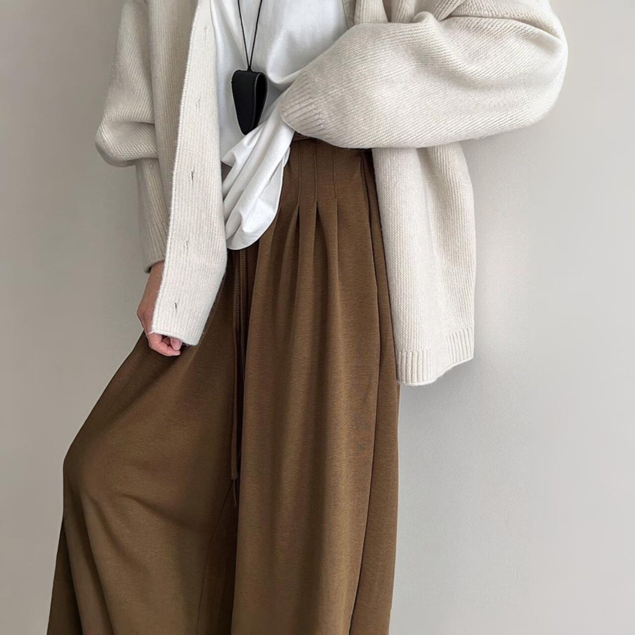 ボリューム感と落ち感が、シンプルなトップスとのバランスを整えます。