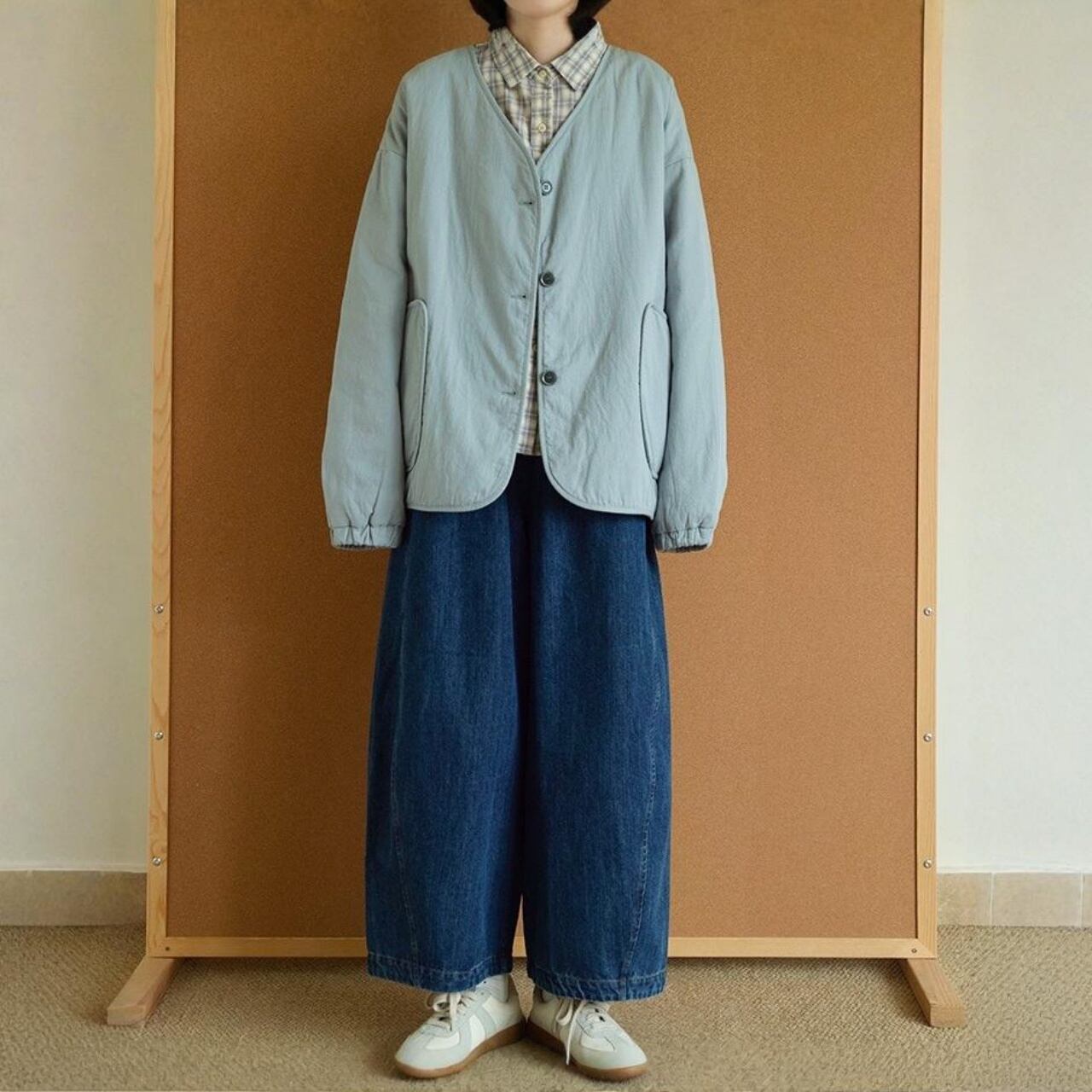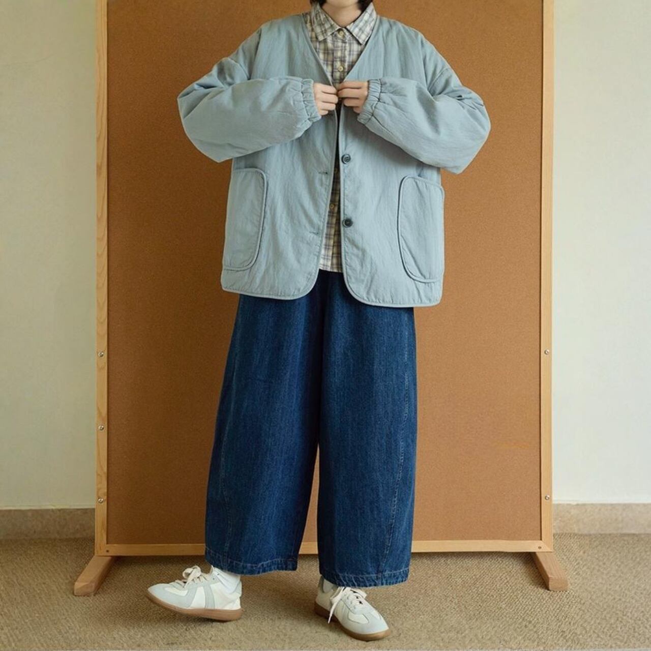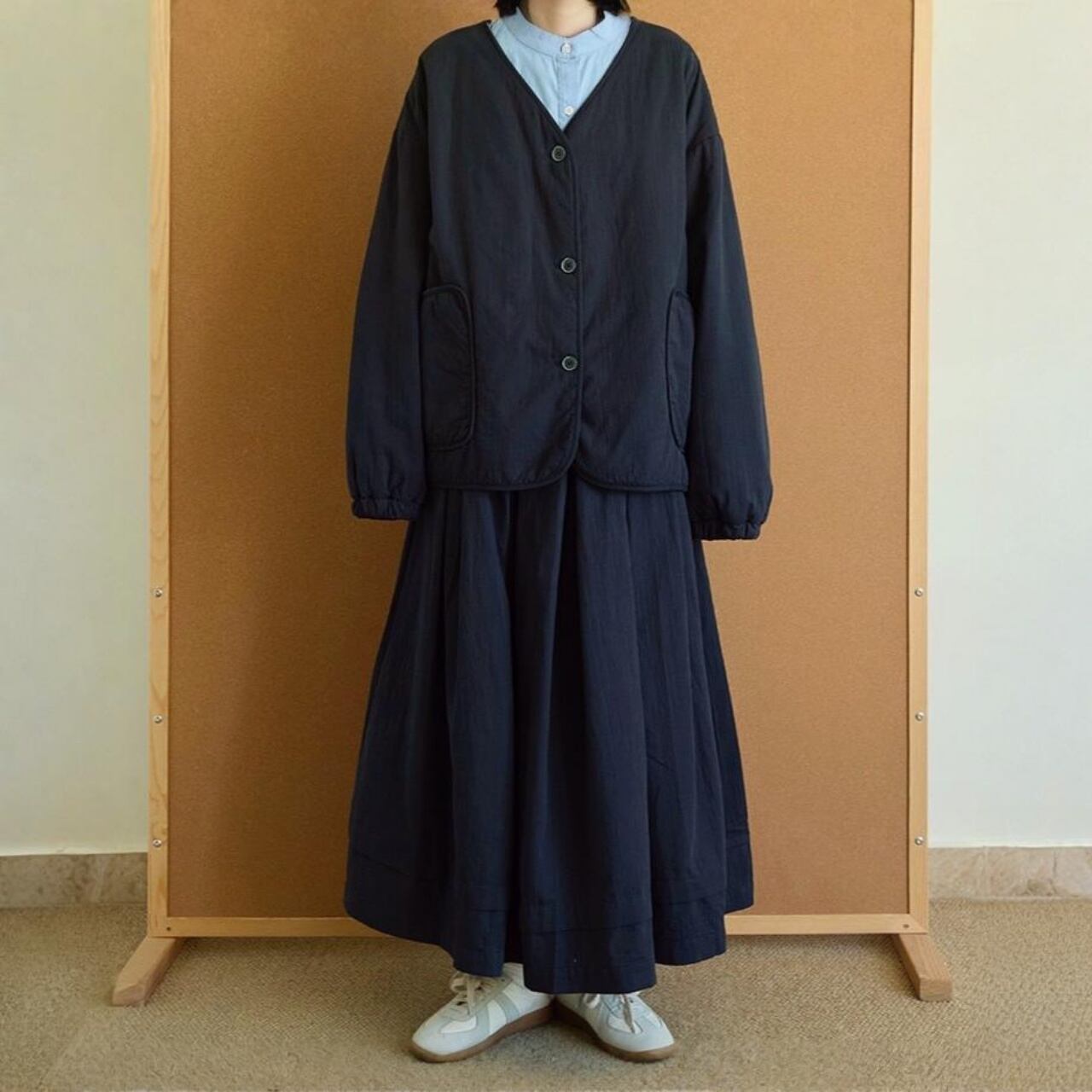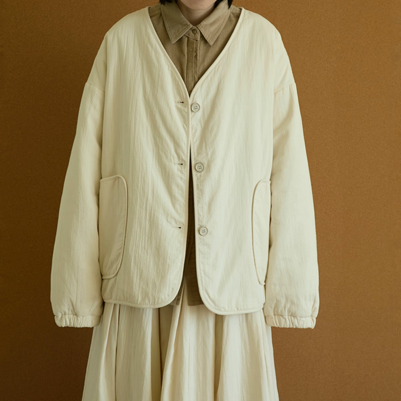 ノーカラーVネックビッグポケットパデットブルゾン A01897