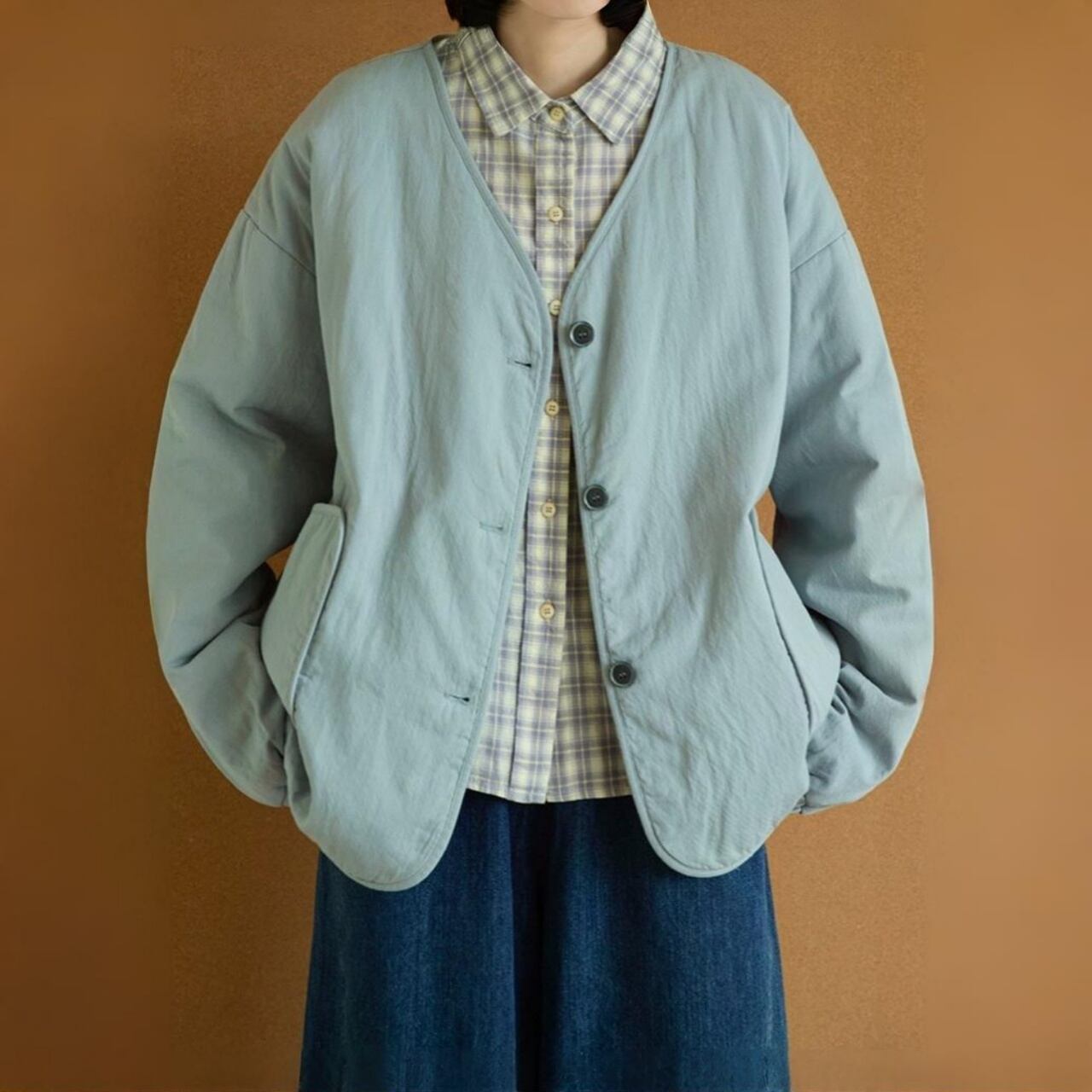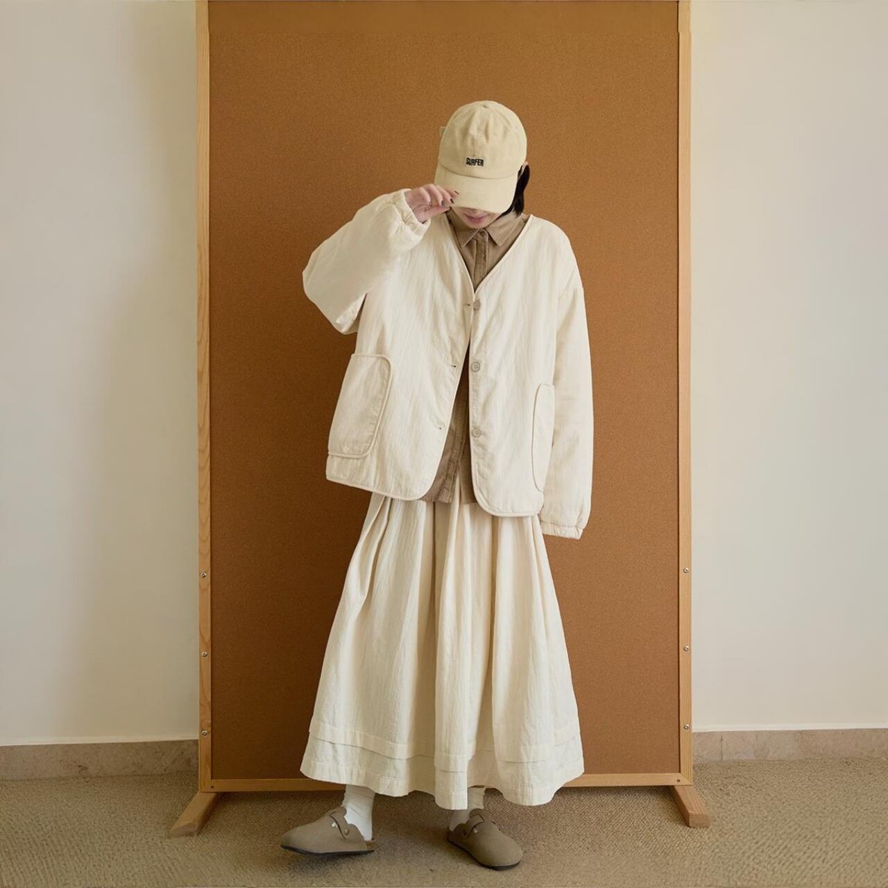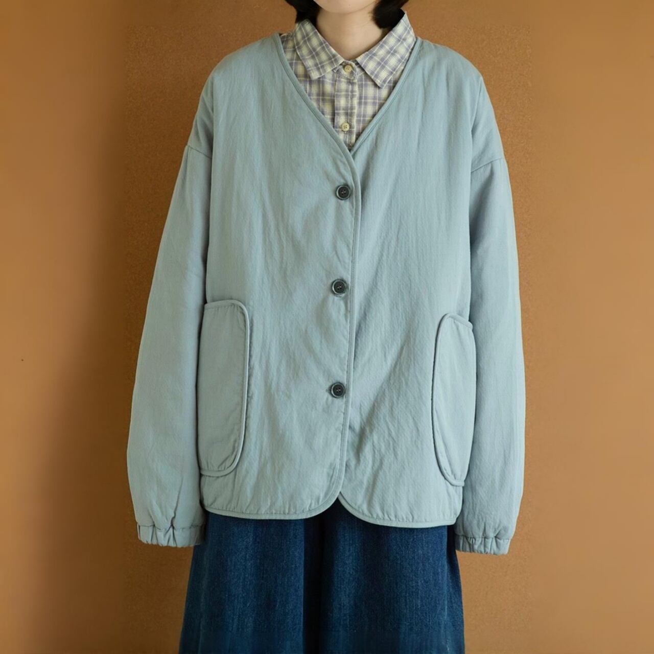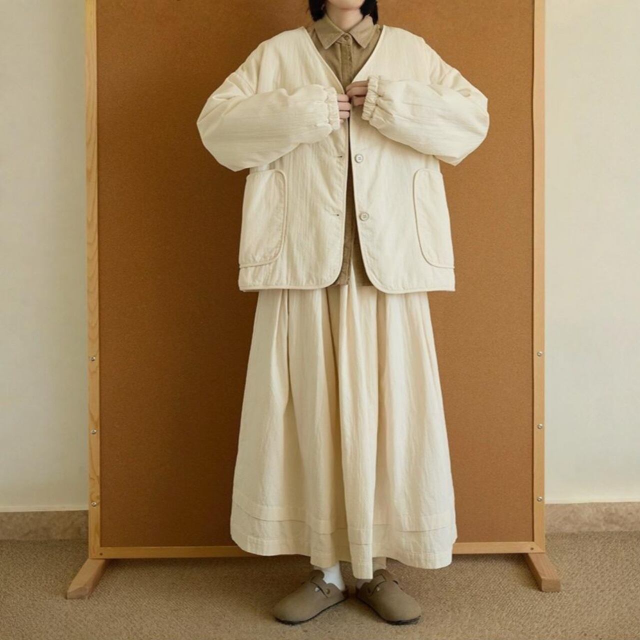 ノーカラーVネックビッグポケットパデットブルゾン A01897