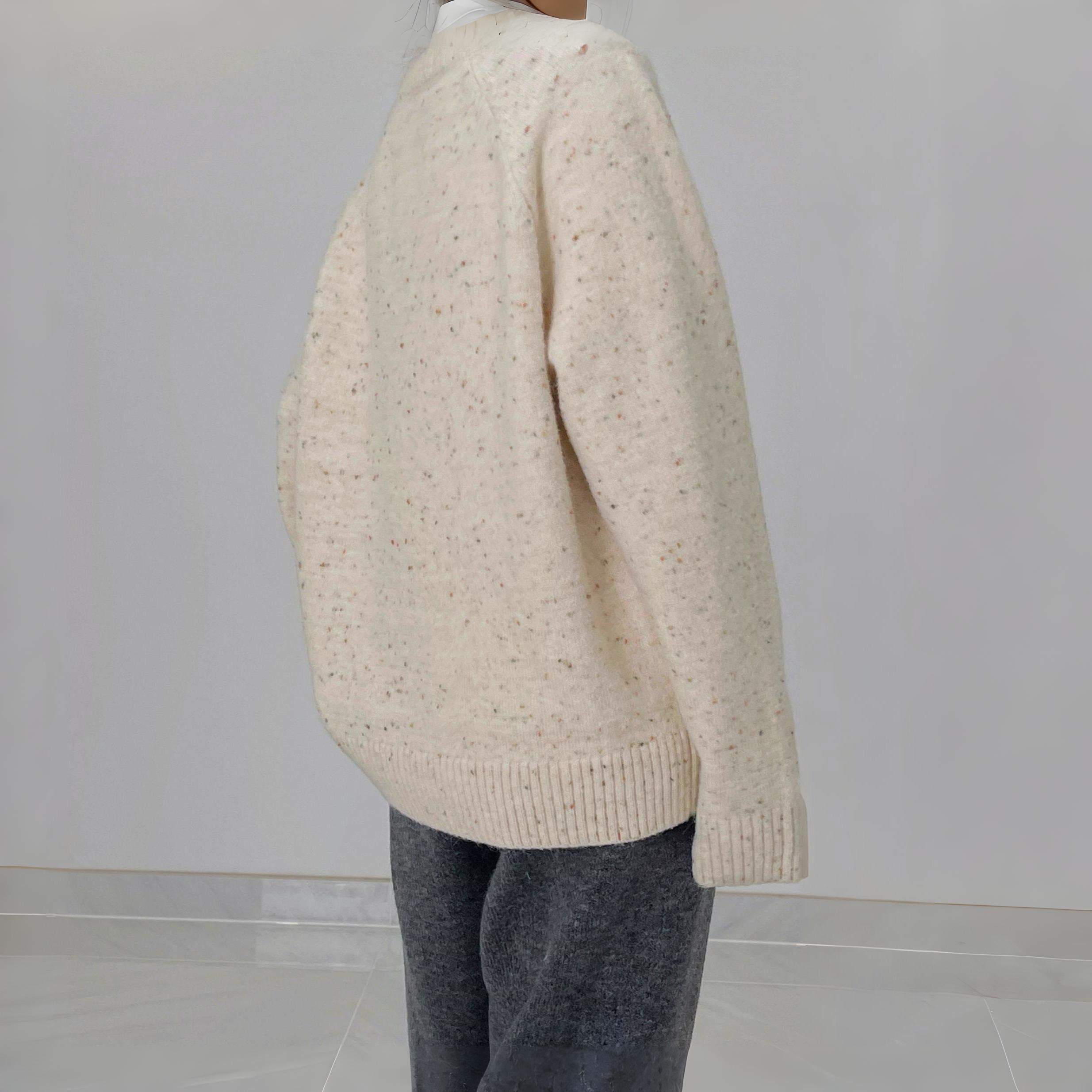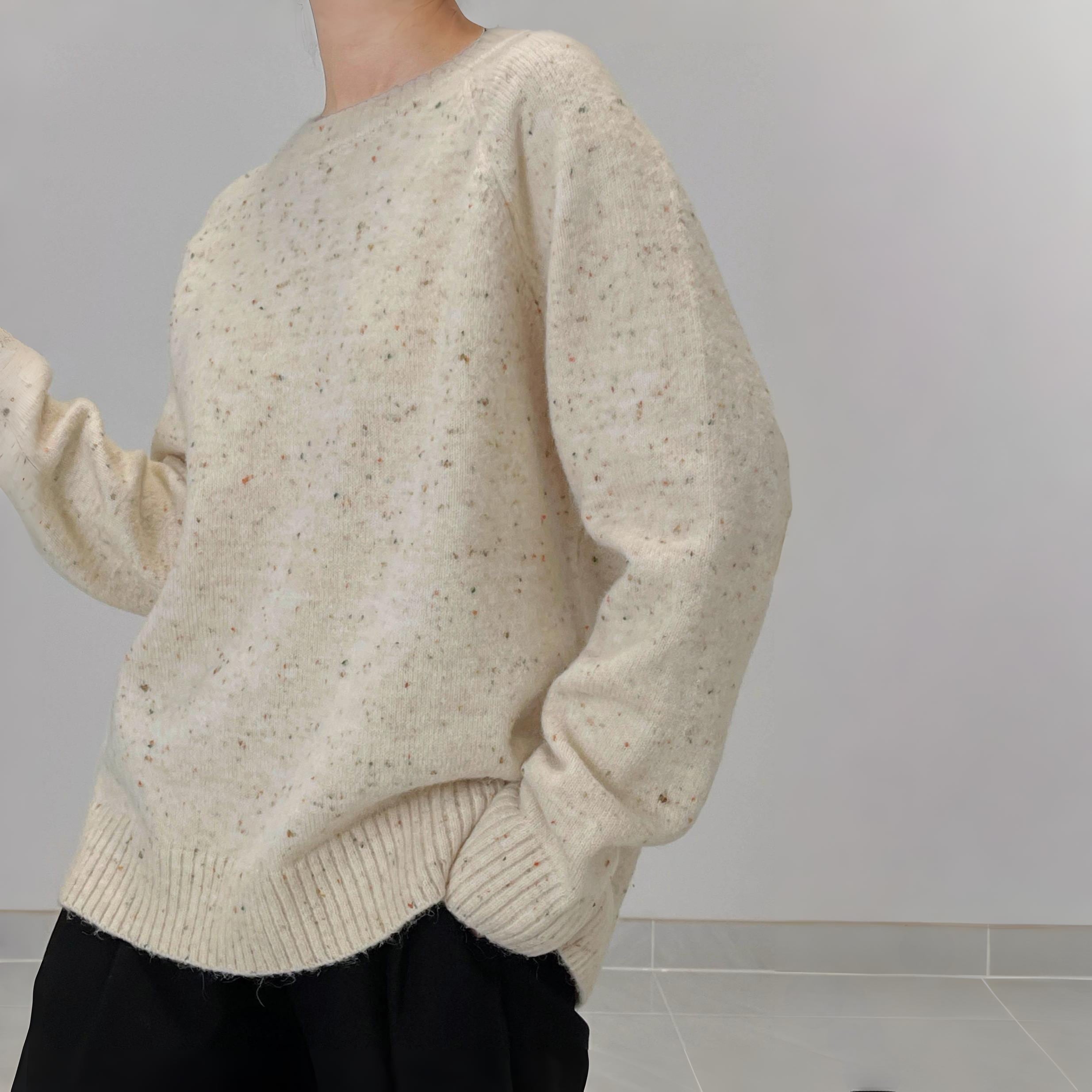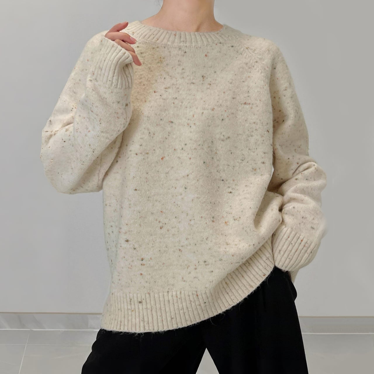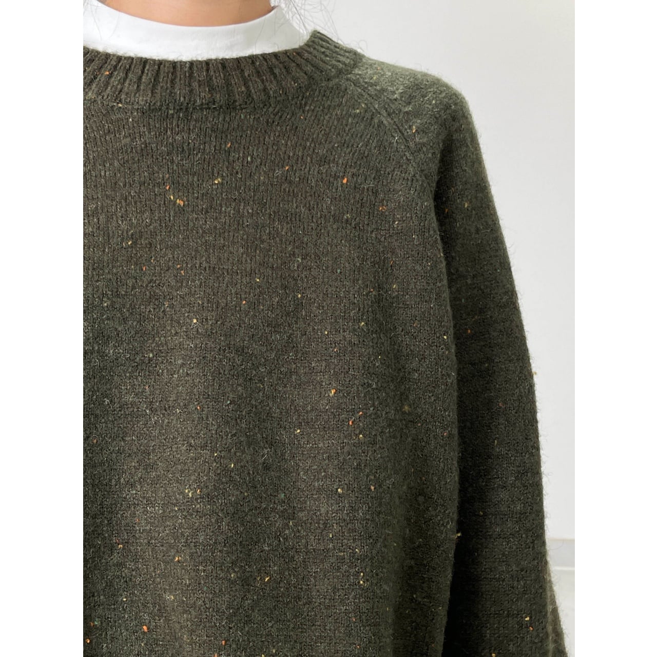 カラフルなネップヤーンが表情豊かな、温かみのあるクルーネックニット。