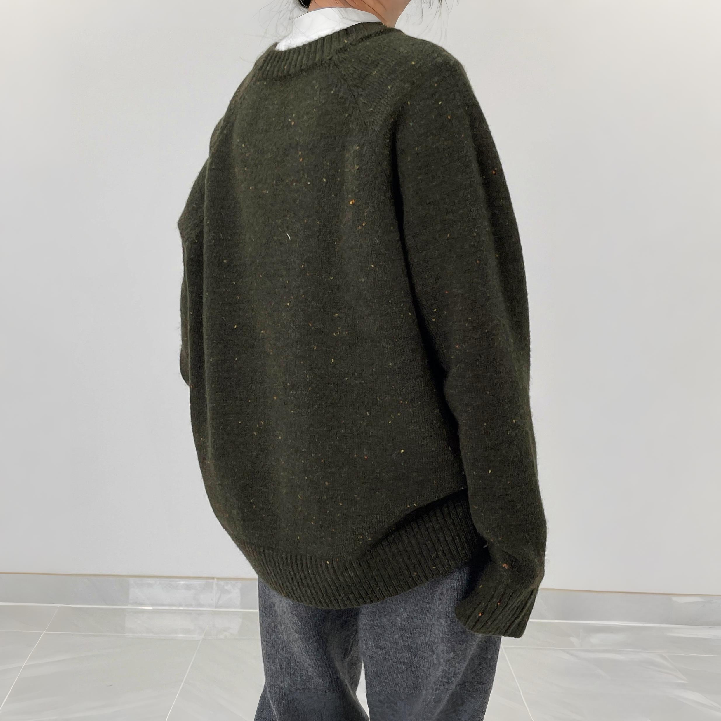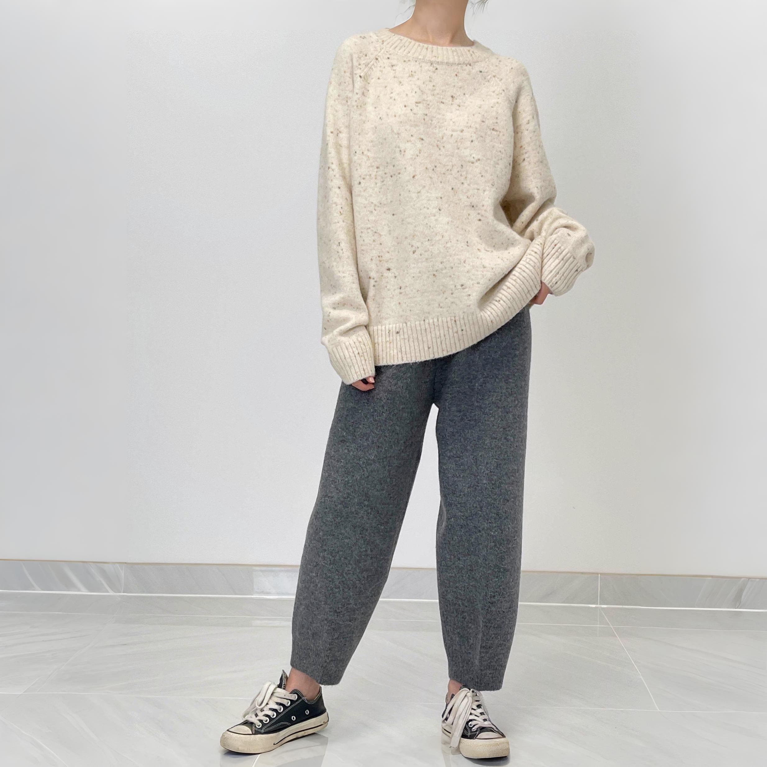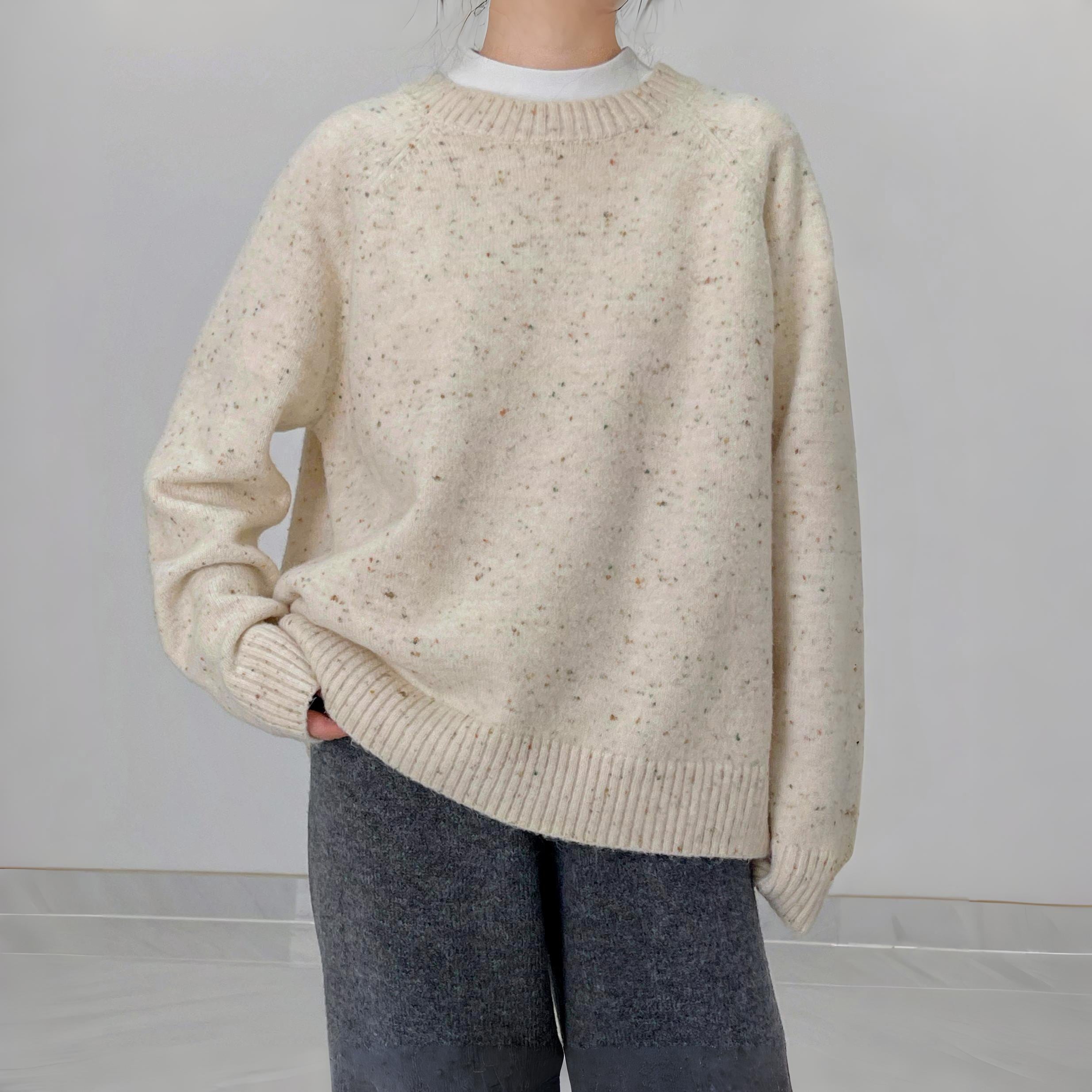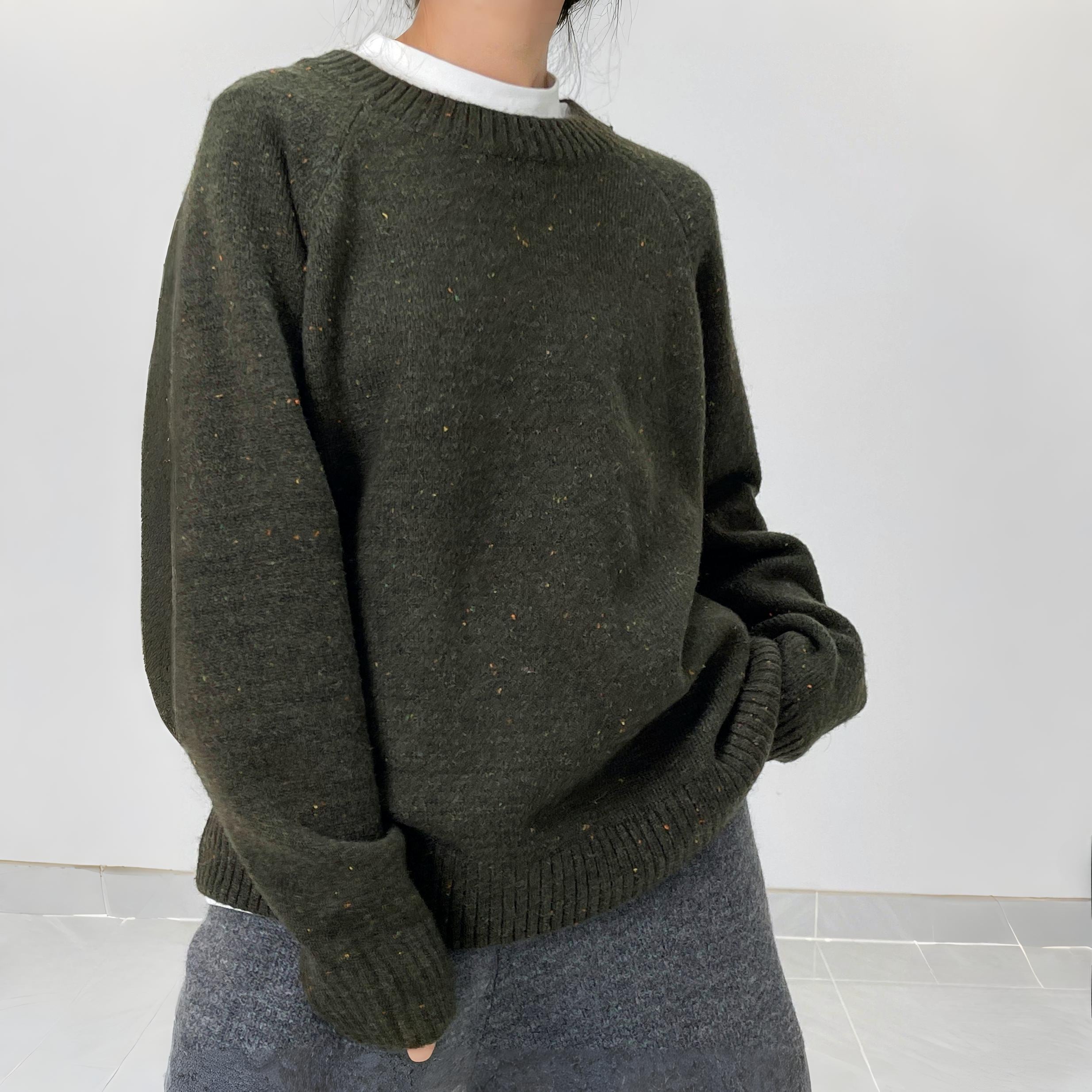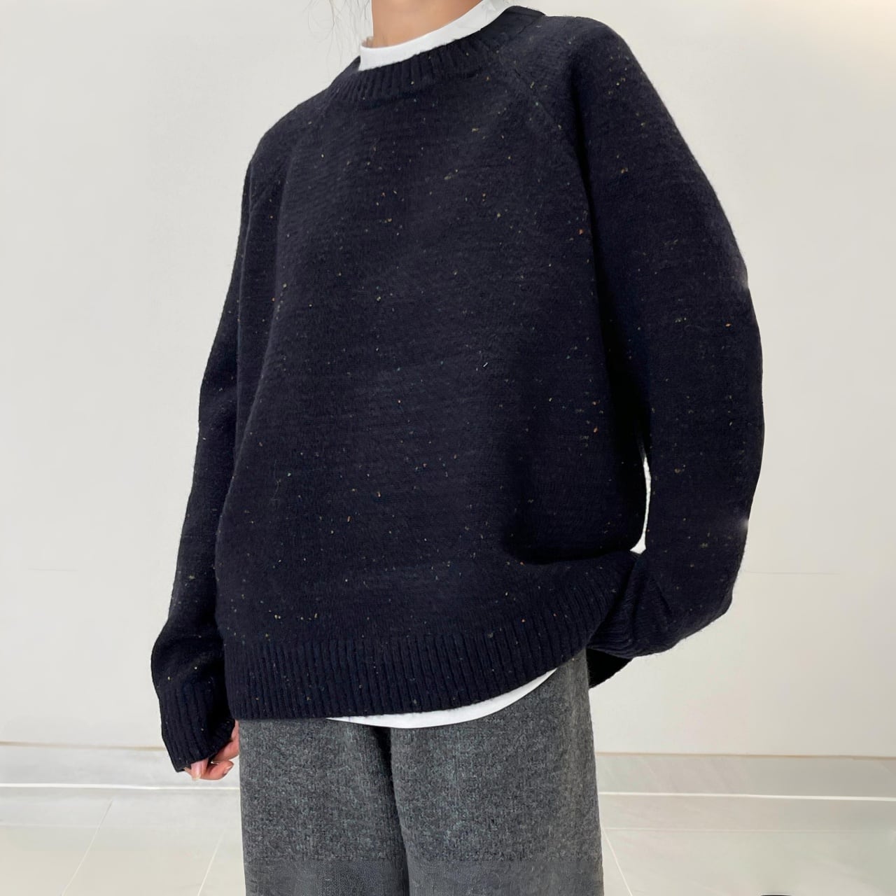 カラフルなネップヤーンが表情豊かな、温かみのあるクルーネックニット。
