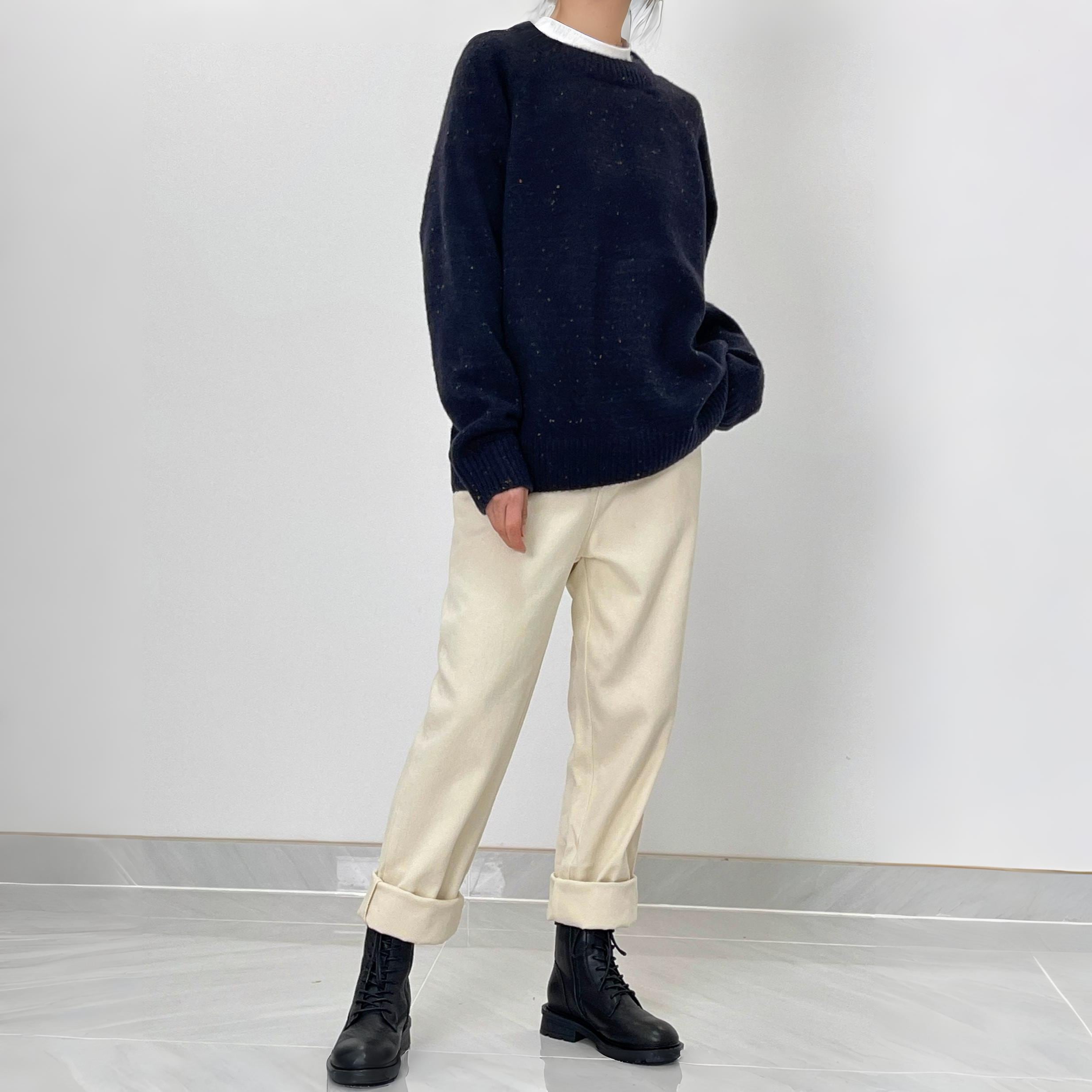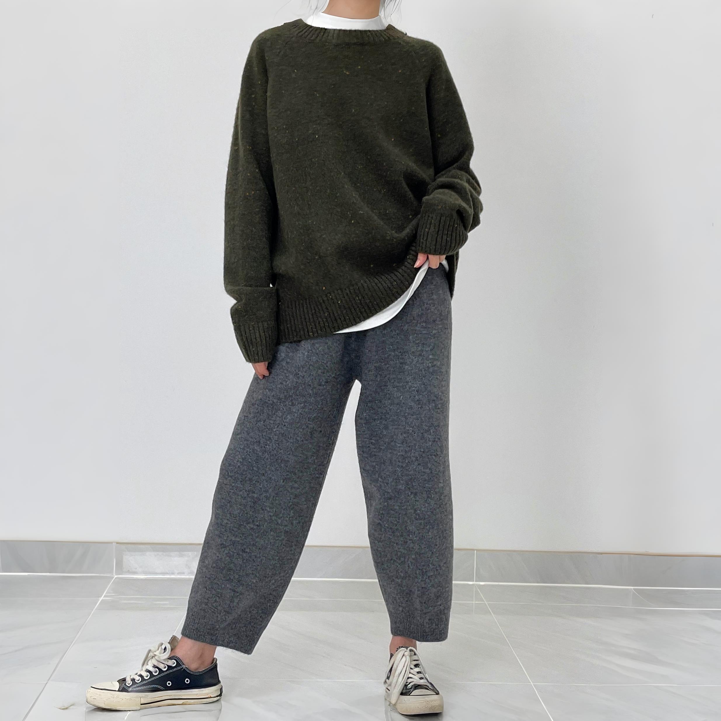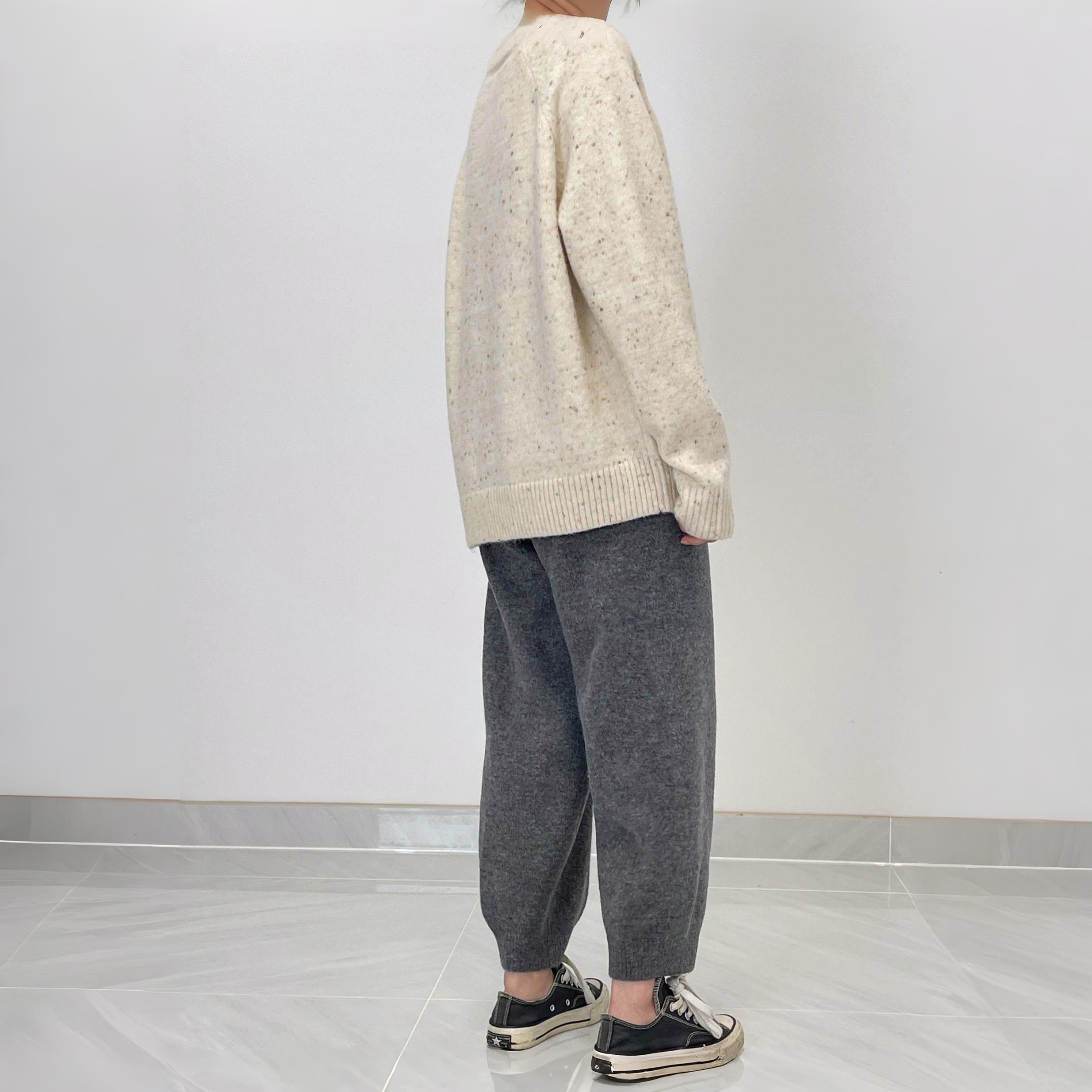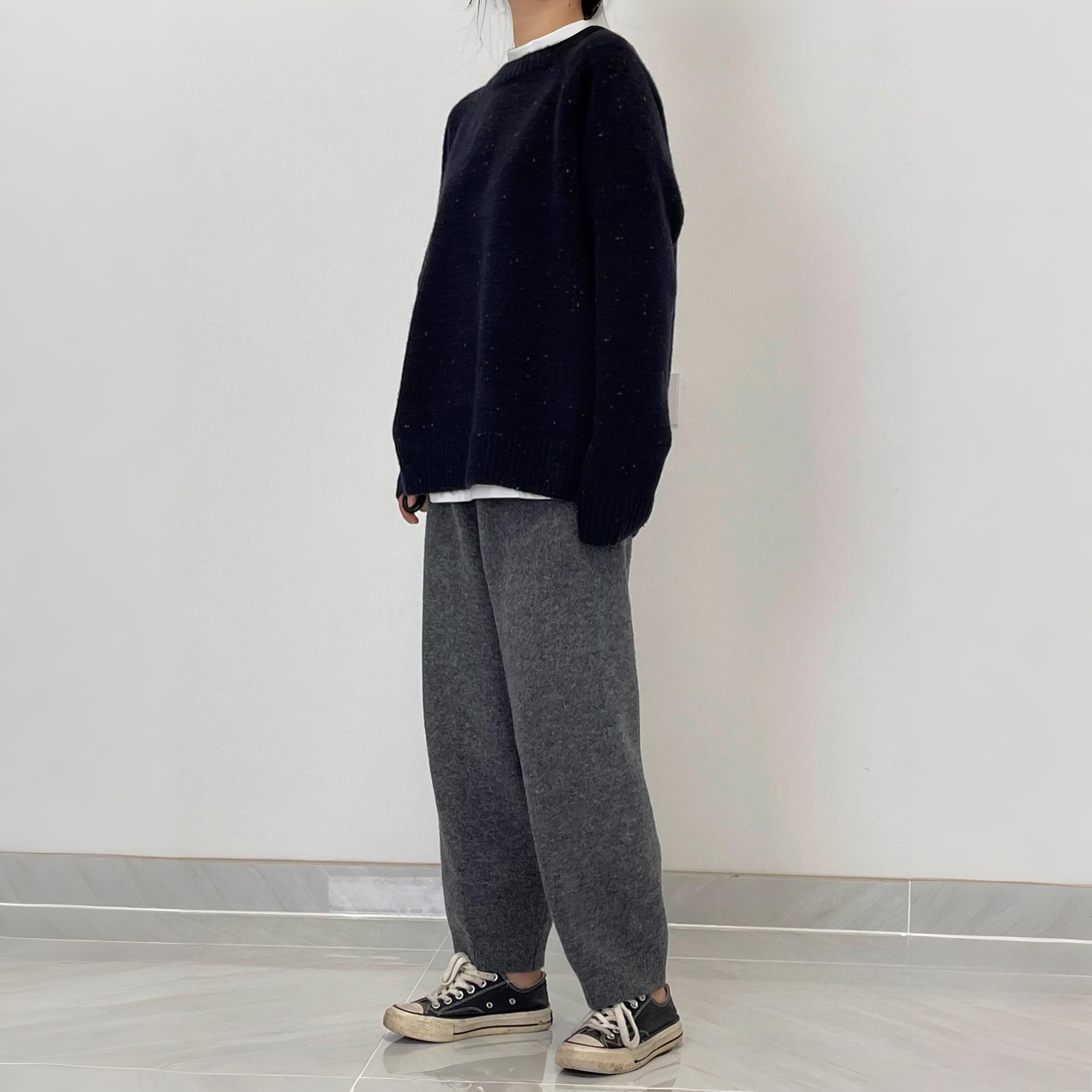 カラフルなネップヤーンが表情豊かな、温かみのあるクルーネックニット。