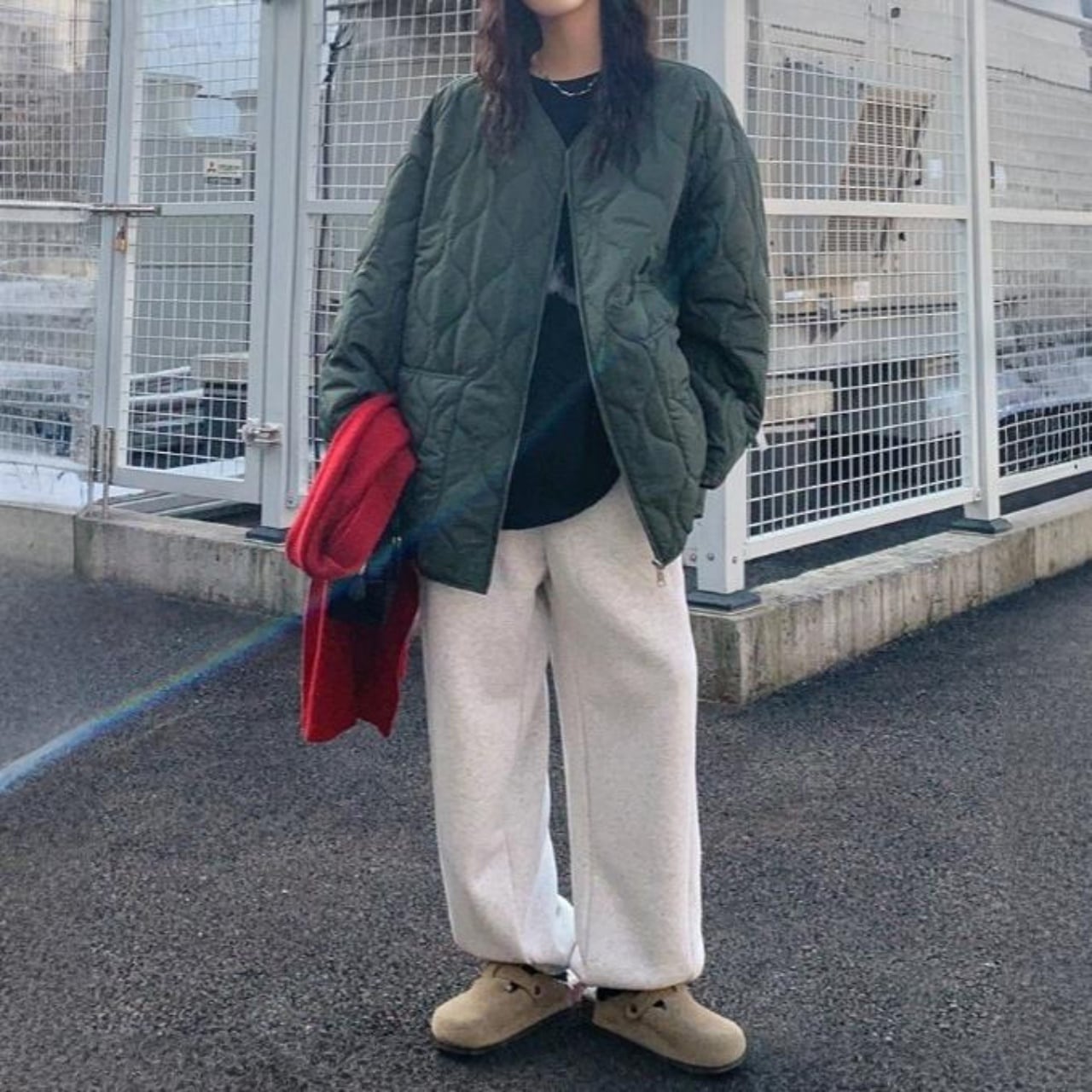 ノーカラーなので、インナーを選ばずレイヤードも自在。