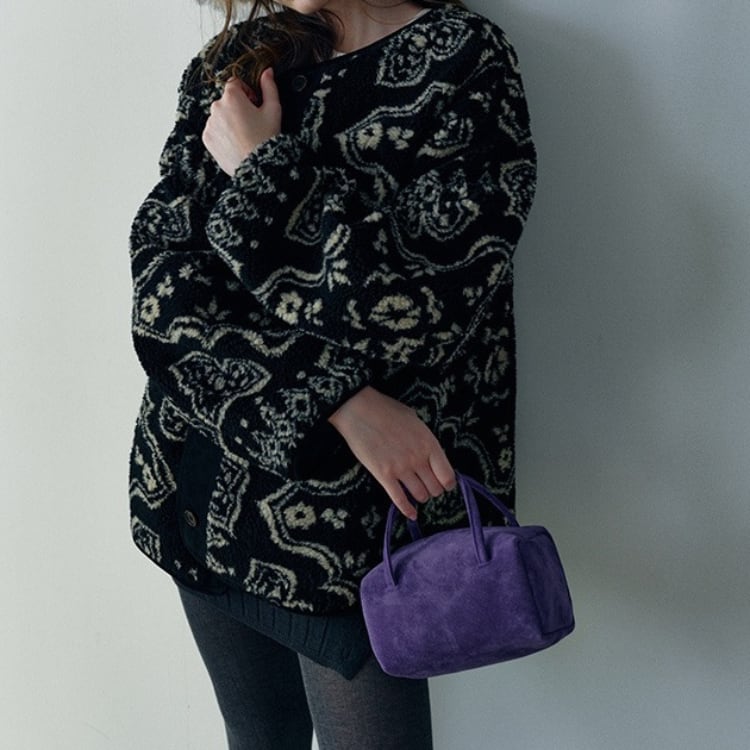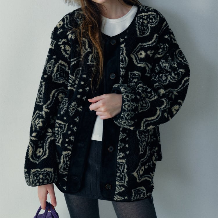 レトロな総柄デザインと、ふんわり暖かなボアフリースが魅力です。
