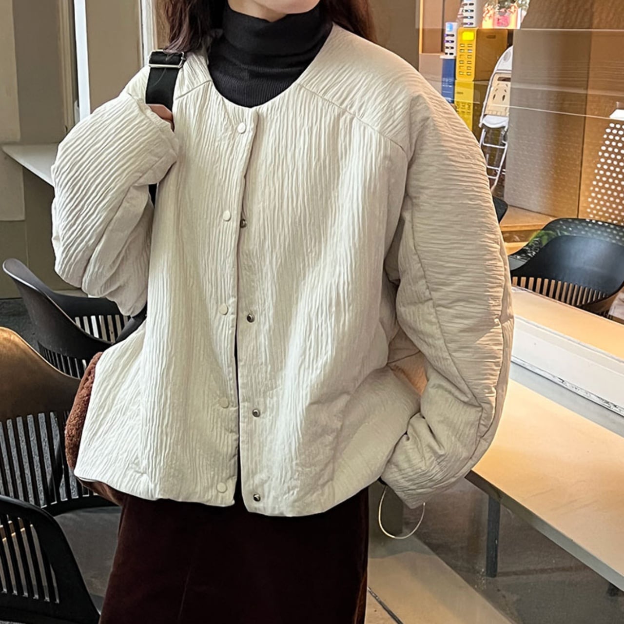 繊細なクリンクル加工が生み出す立体感と表情が魅力のジャケット。