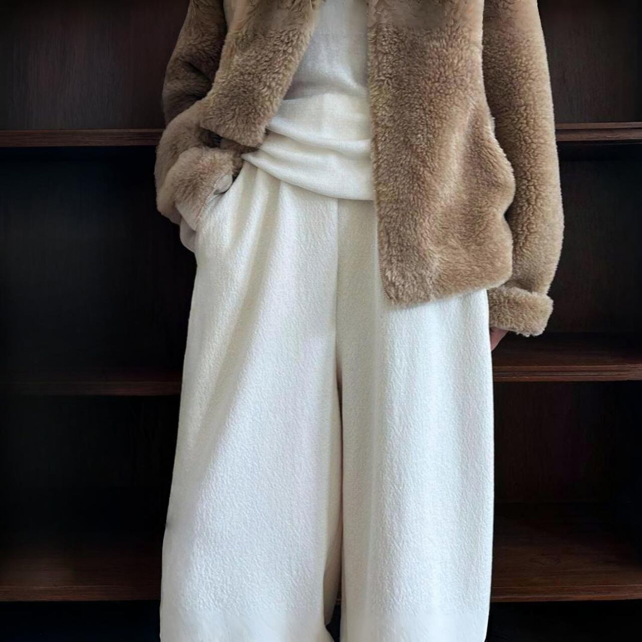 ブラッシュドバックワイドレッグフルレングスイージーパンツ A01911