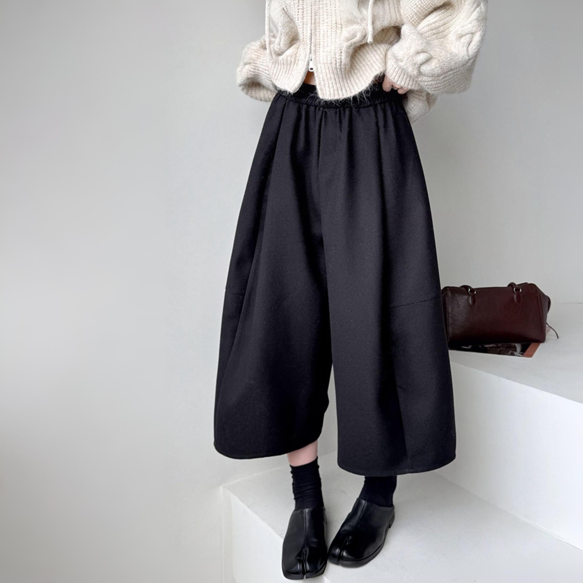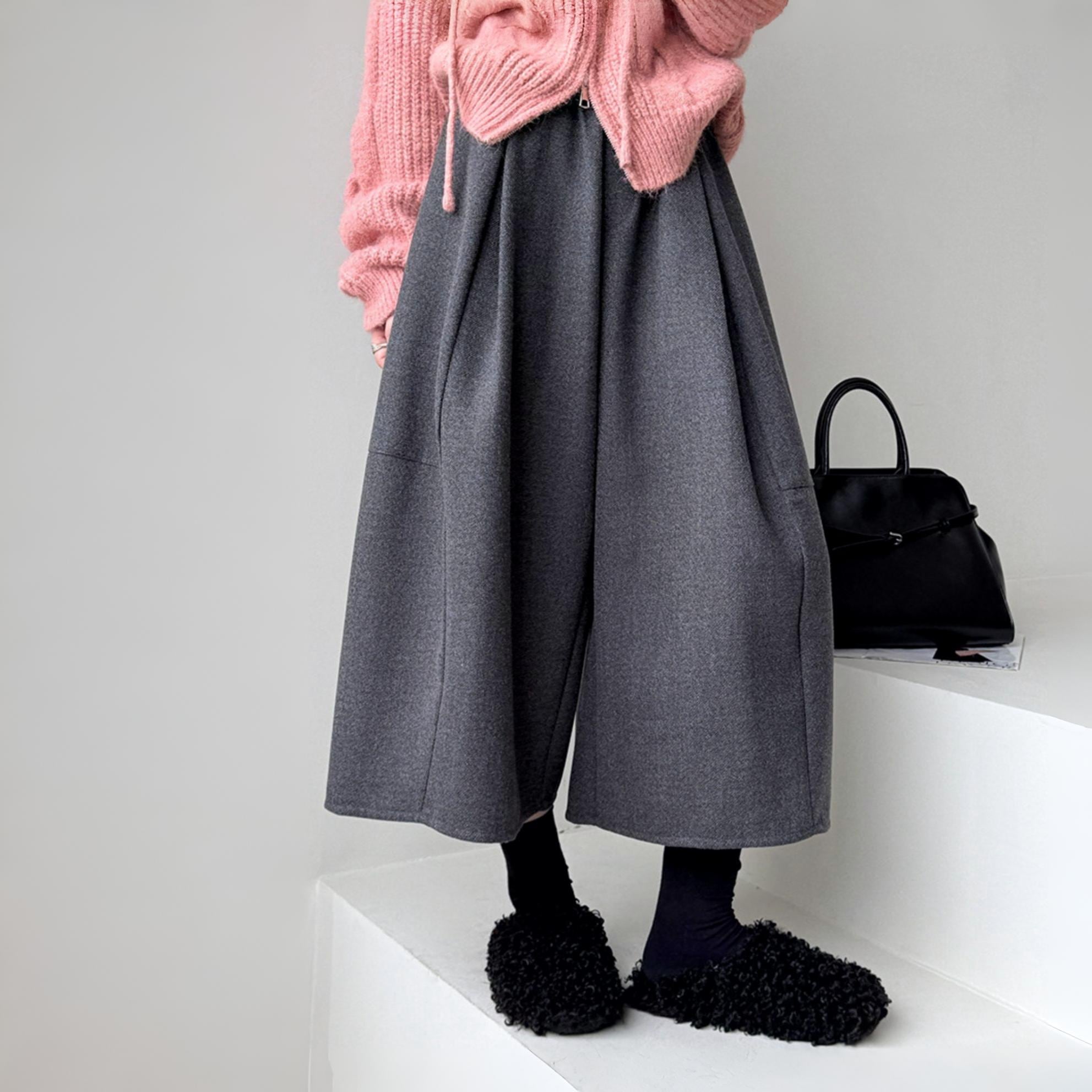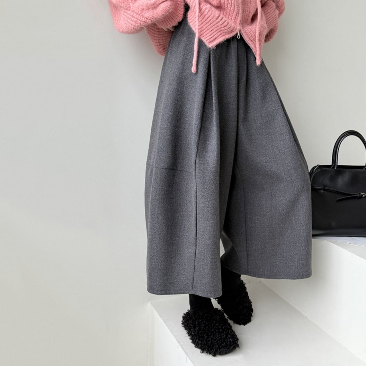 ボリューム感が気になるレッグラインをカバーし、足元を華奢に演出。