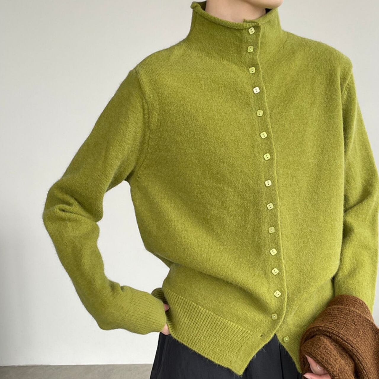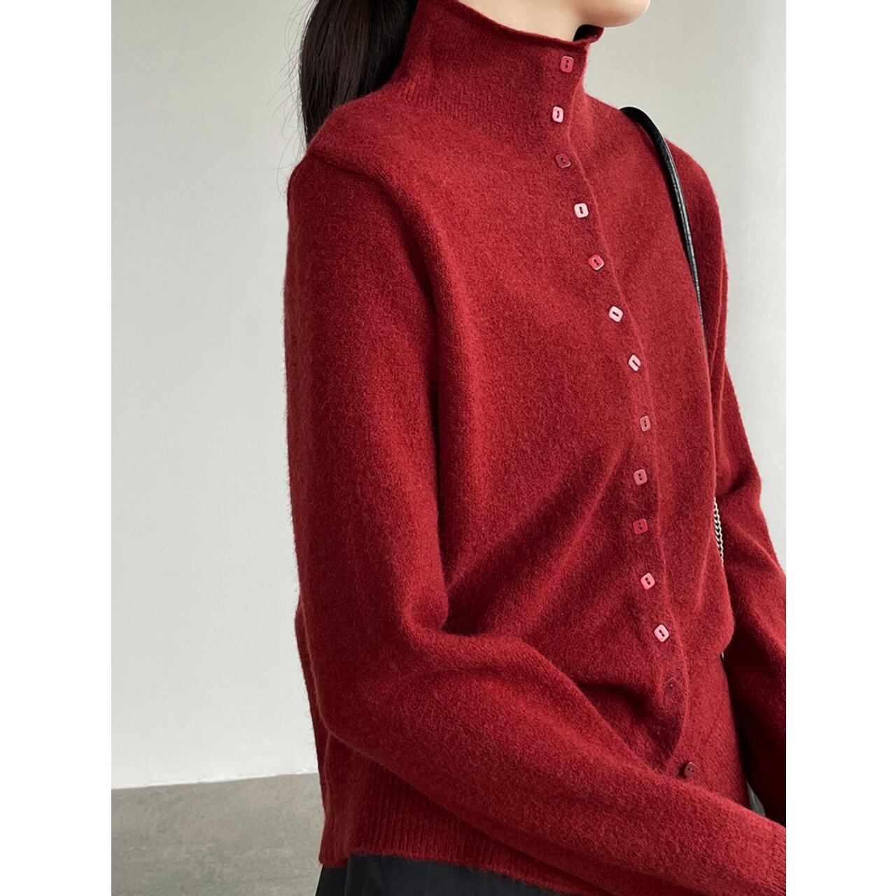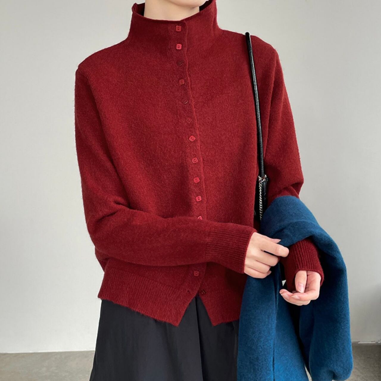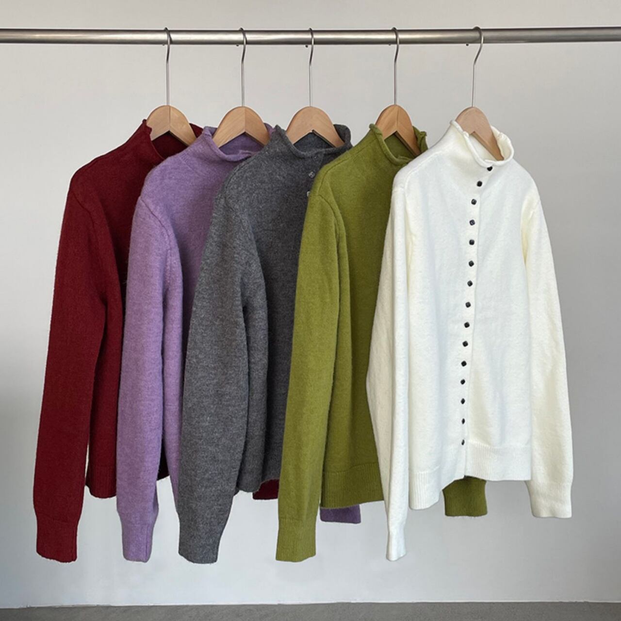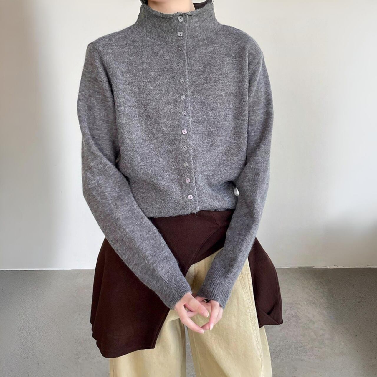 ハイネックで顔まわりをすっきり見せつつ、冬の冷気もしっかりガード。