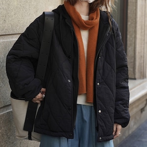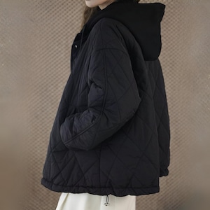 ダイヤキルトで上品さとトレンド感を両立したフードジャケット。