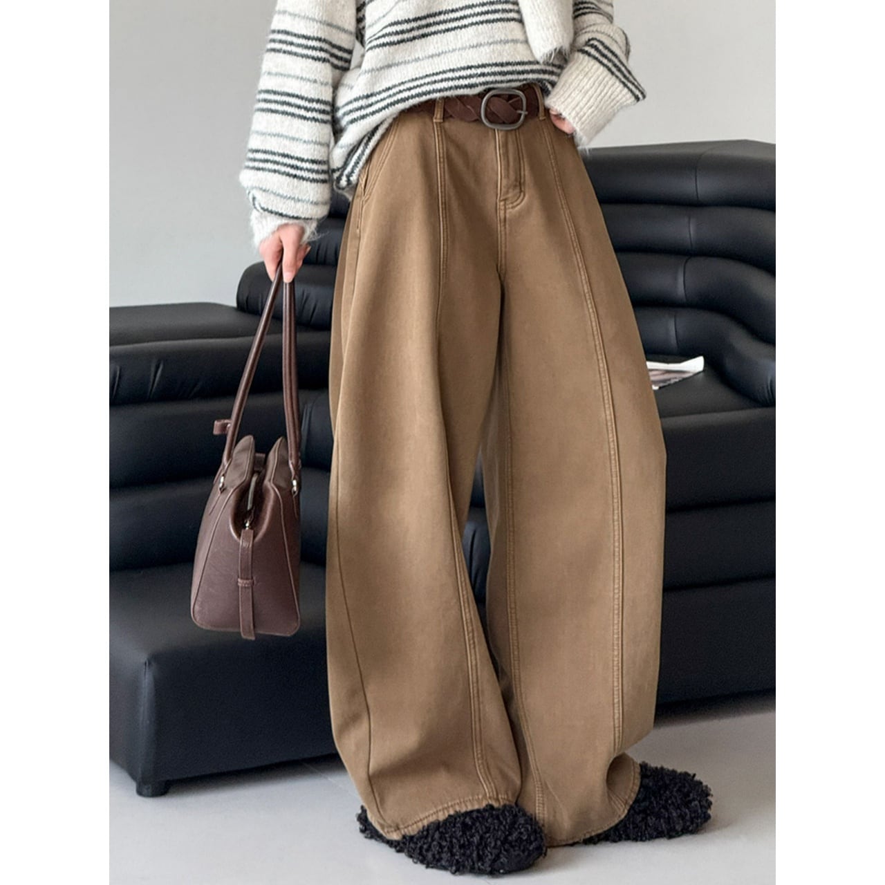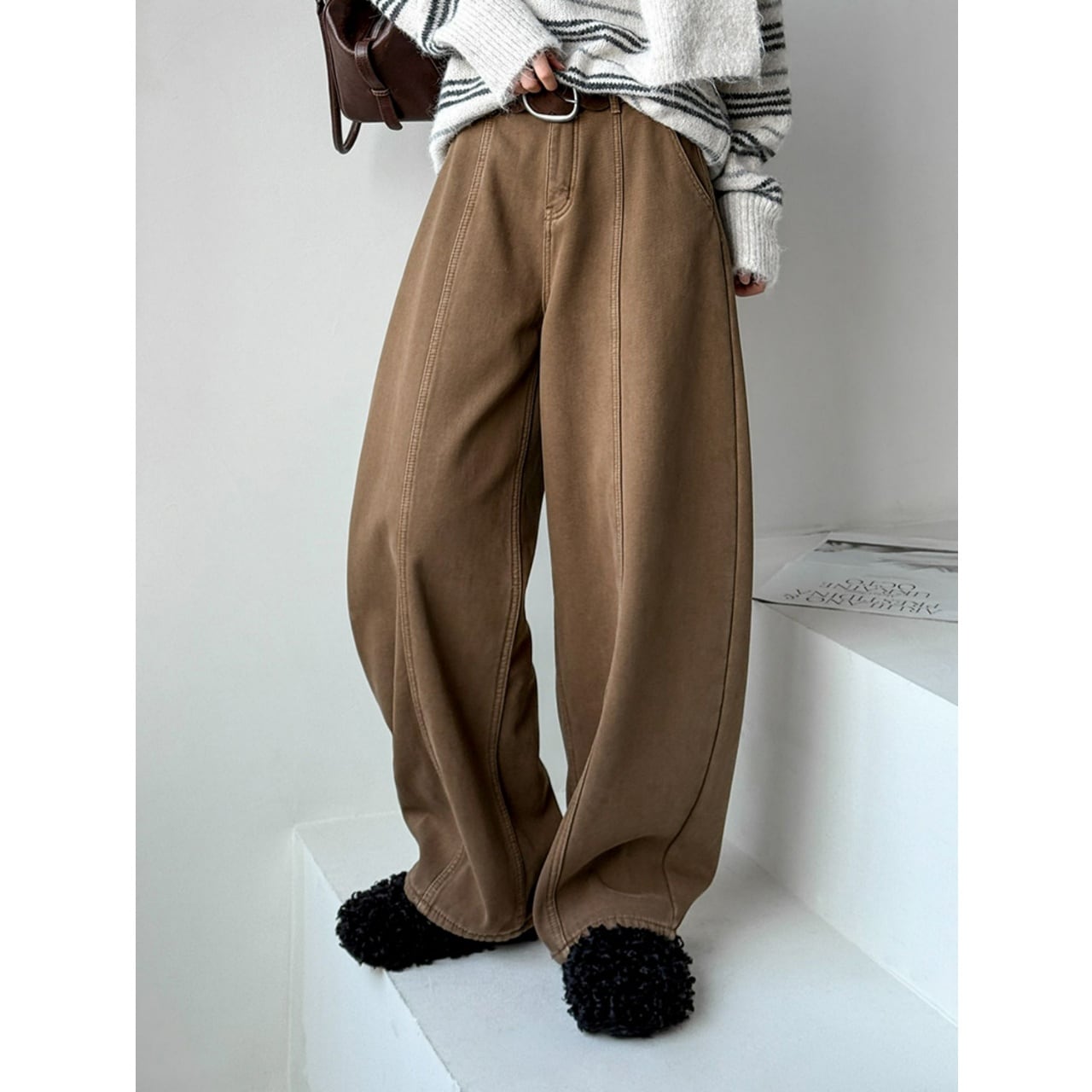 ゆったりシルエットでも着膨れせず脚を長く美しく見せます。