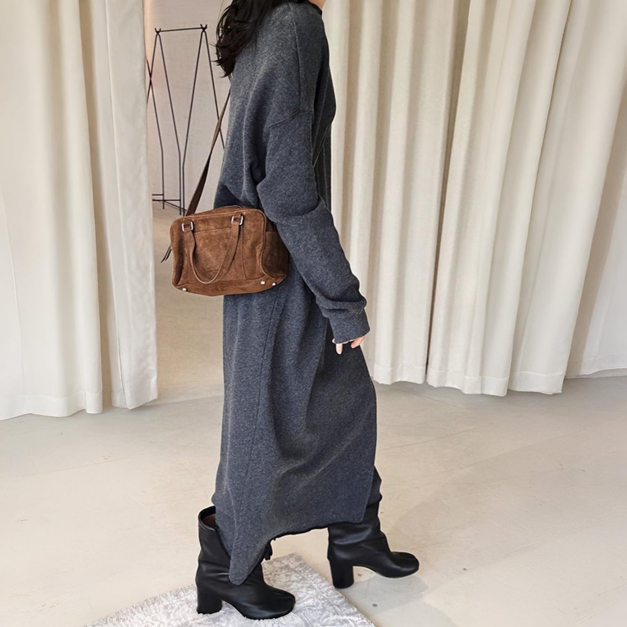 ストンと落ちるIラインが、着るだけでスタイルアップを叶えるロングワンピース。