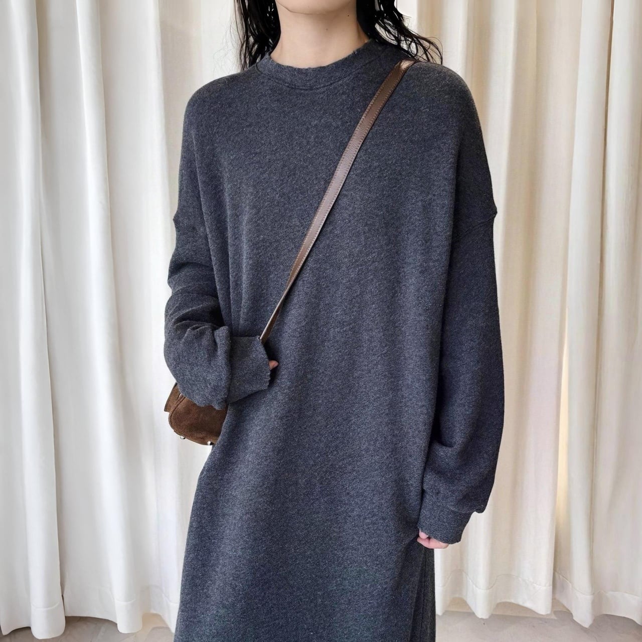 シンプルなクルーネックは重ね着とも相性が良く、幅広いコーデに対応します。