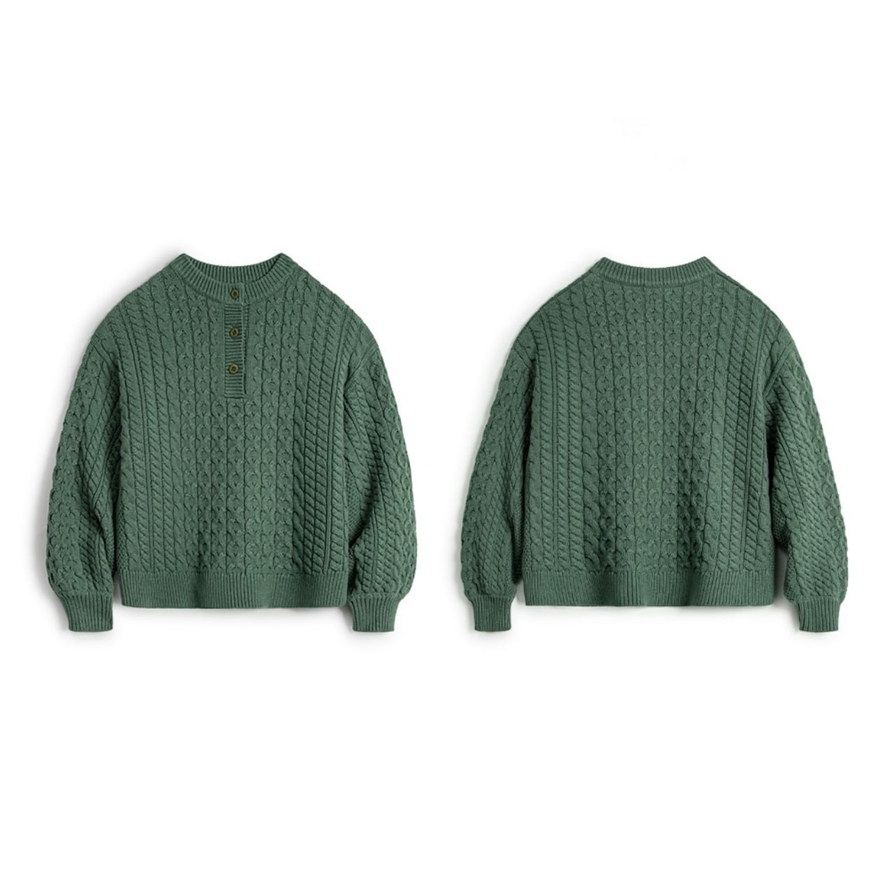 立体的なケーブル編みが、大人カジュアルに奥行きと温もりをプラス。