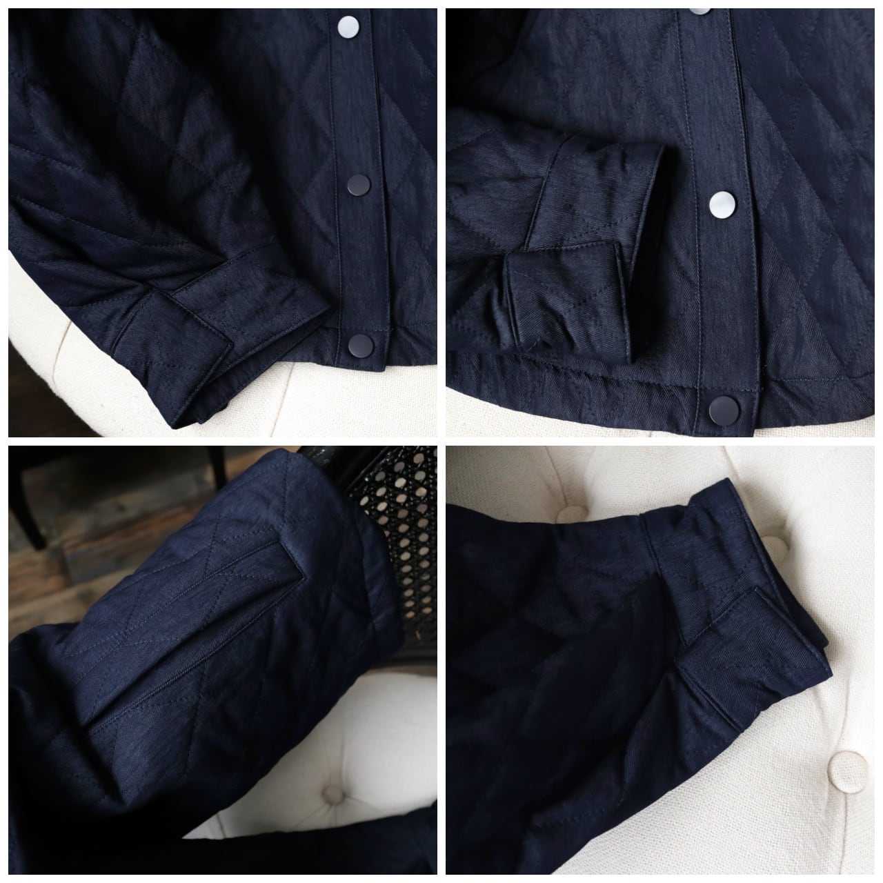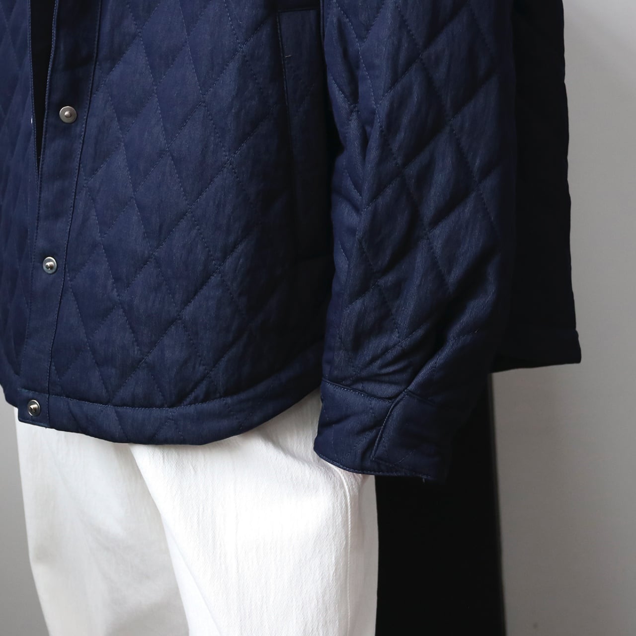 デニム×ダイヤキルティングの質感が、上品さとカジュアル感を引き立てるブルゾン。