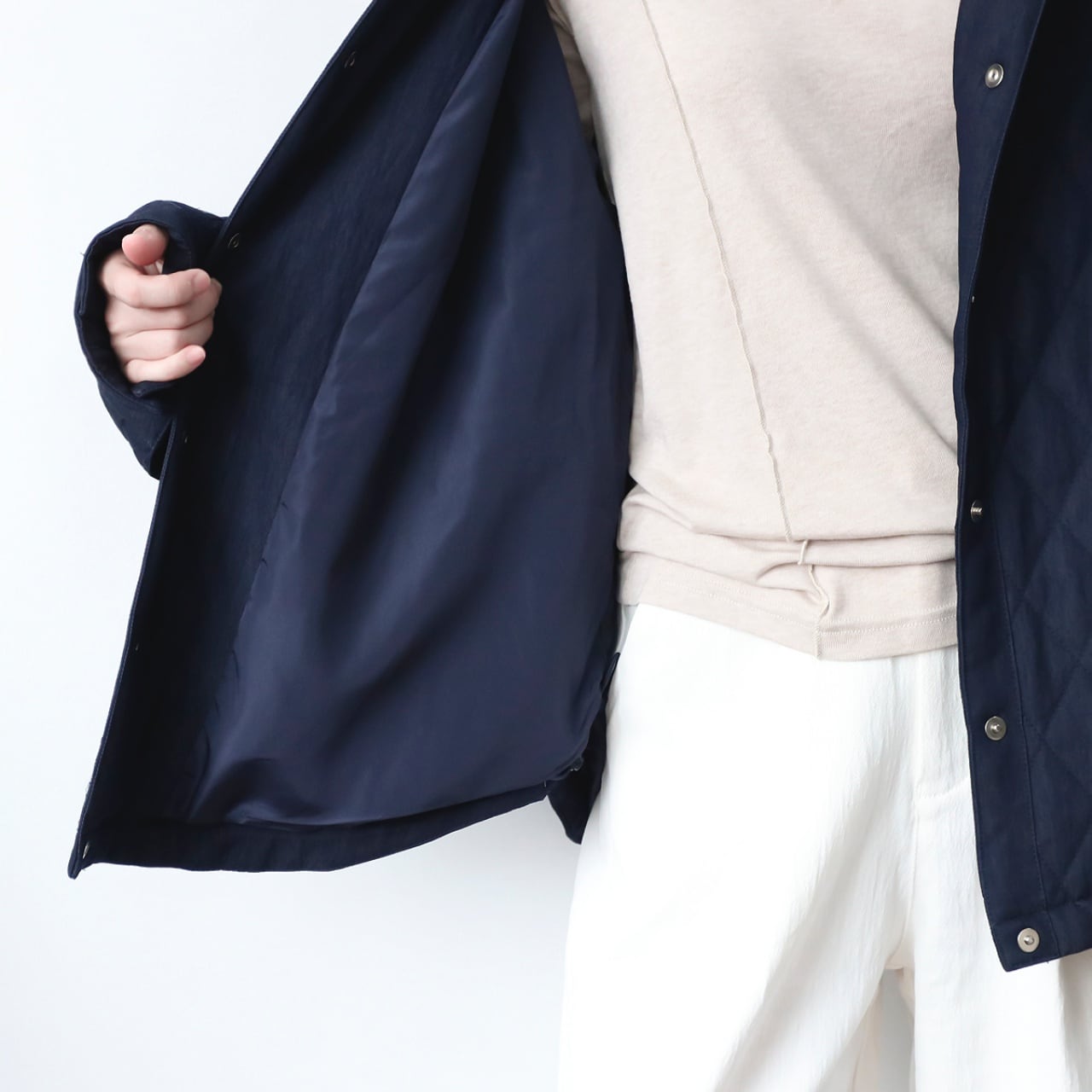 定番のネイビーがどんなコーデにも馴染み、デイリーに活躍する一着です。