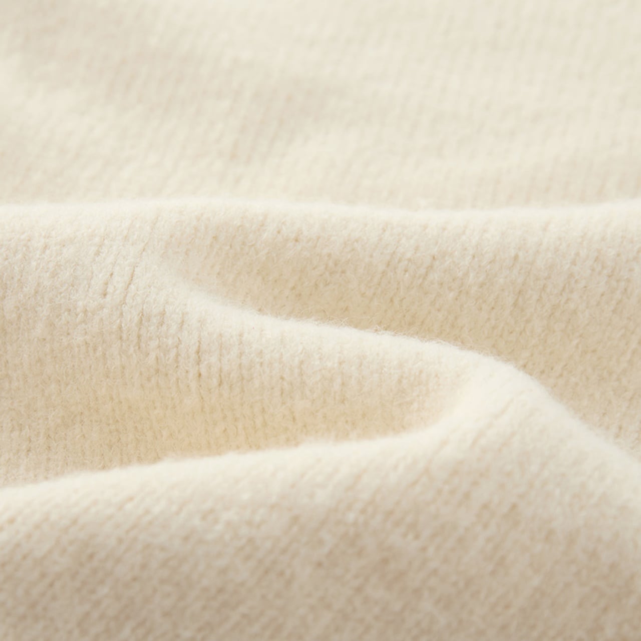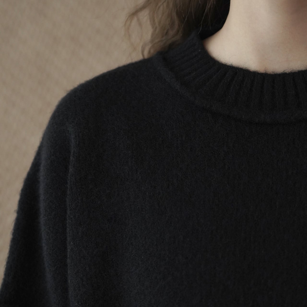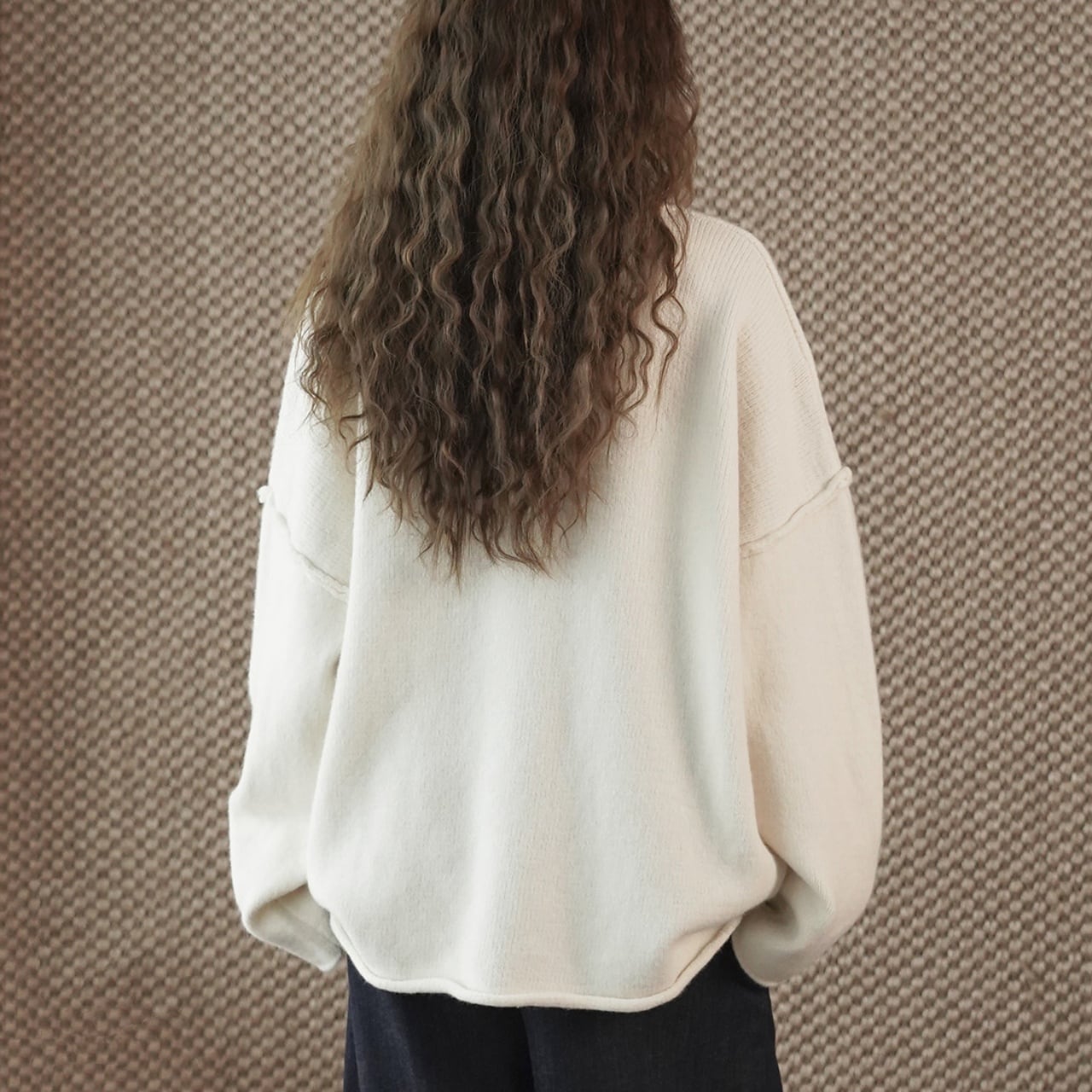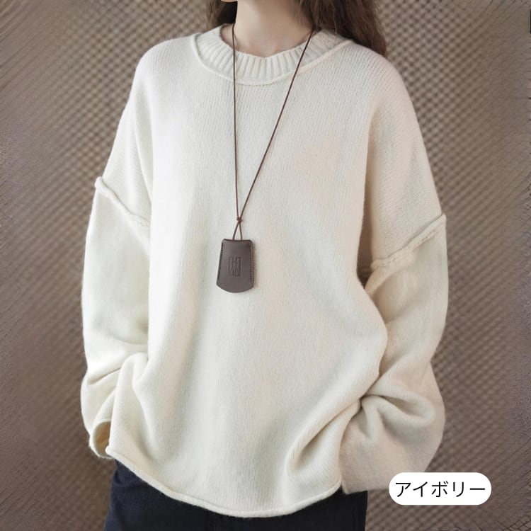 ドロップショルダーと計算されたルーズシルエットが、体型カバーしつつ女性らしい抜け感を演出。