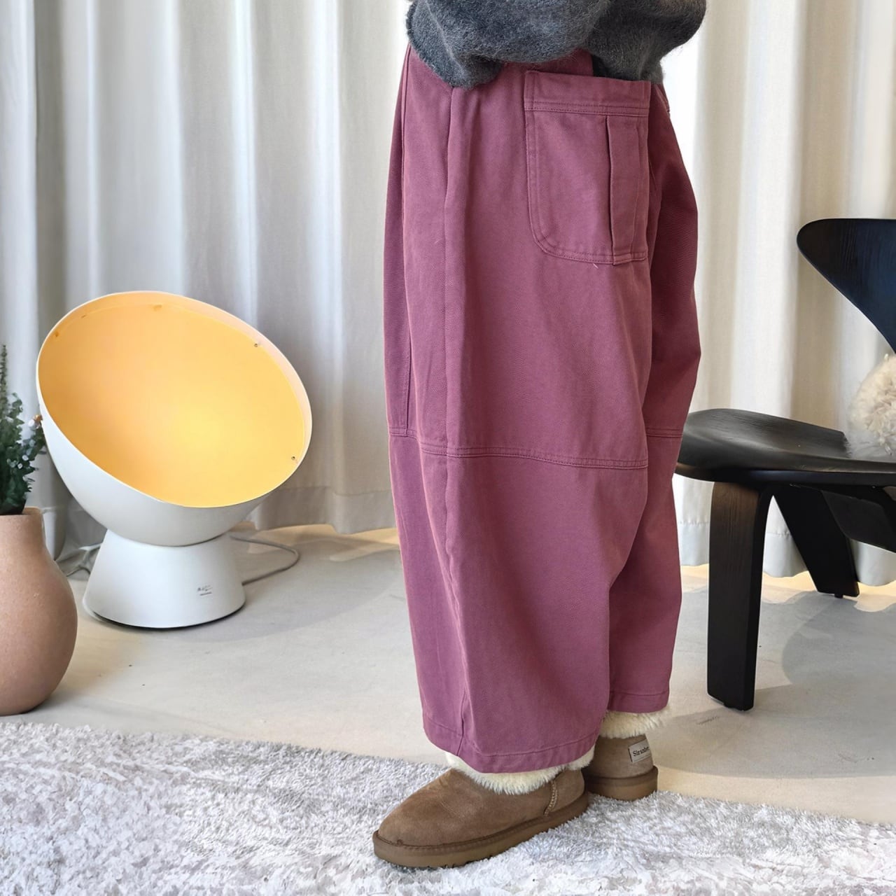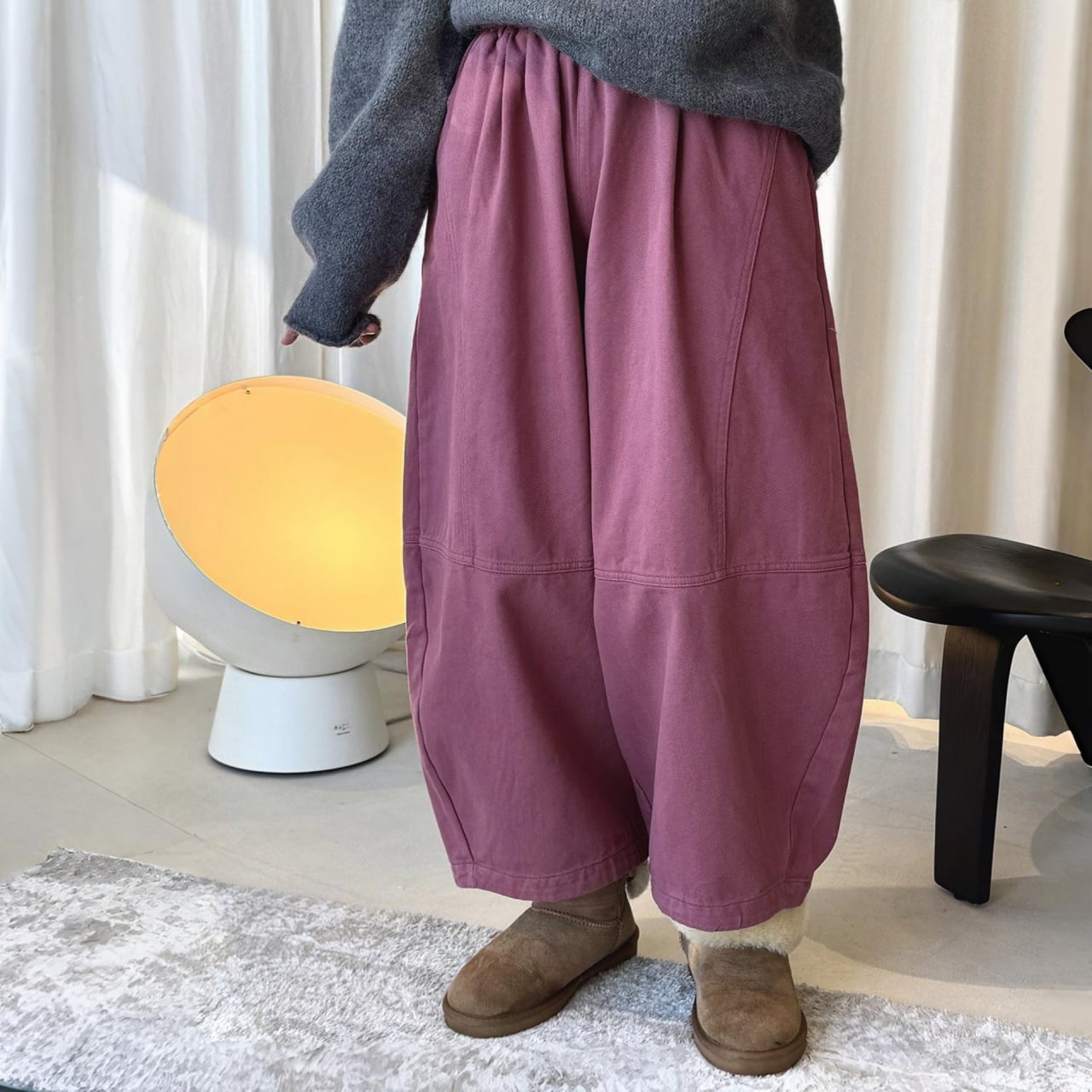 カーブステッチパネルデザインフリースワイドパンツ A01954