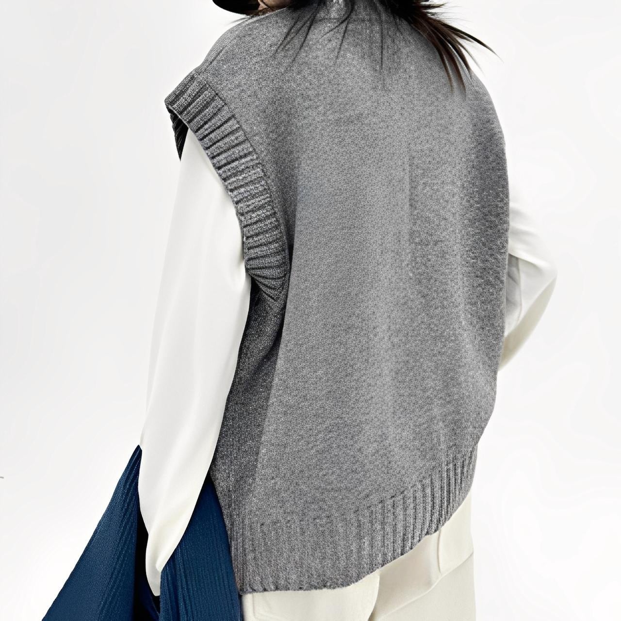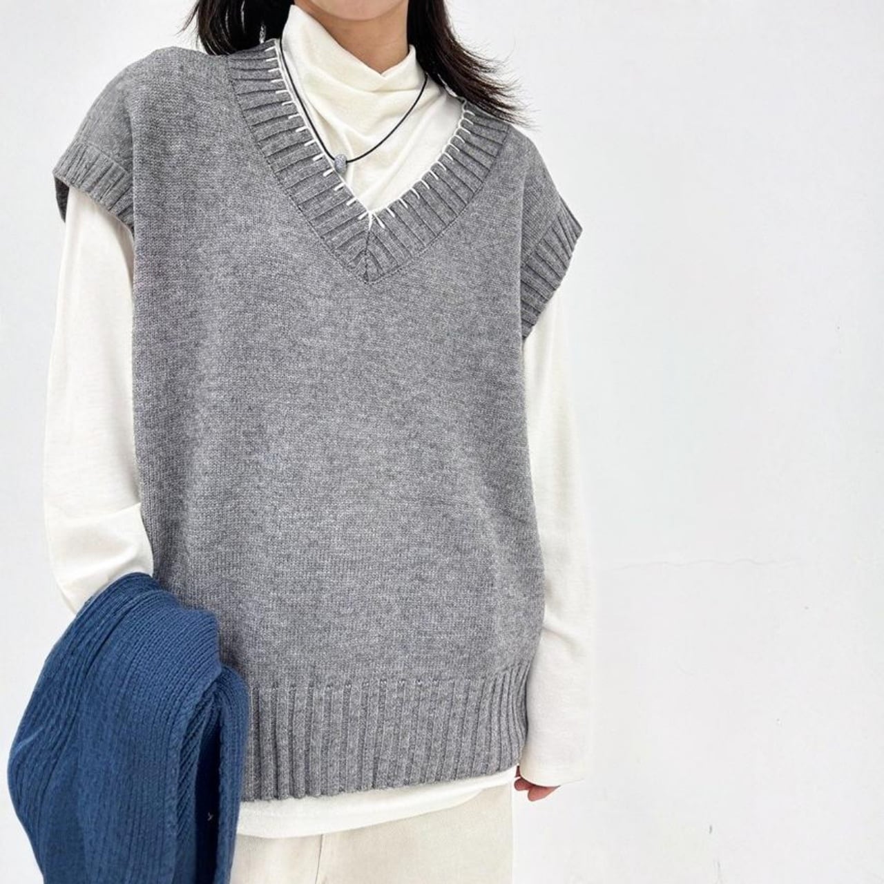 ルーズシルエットステッチラインVネックニットベスト A01960