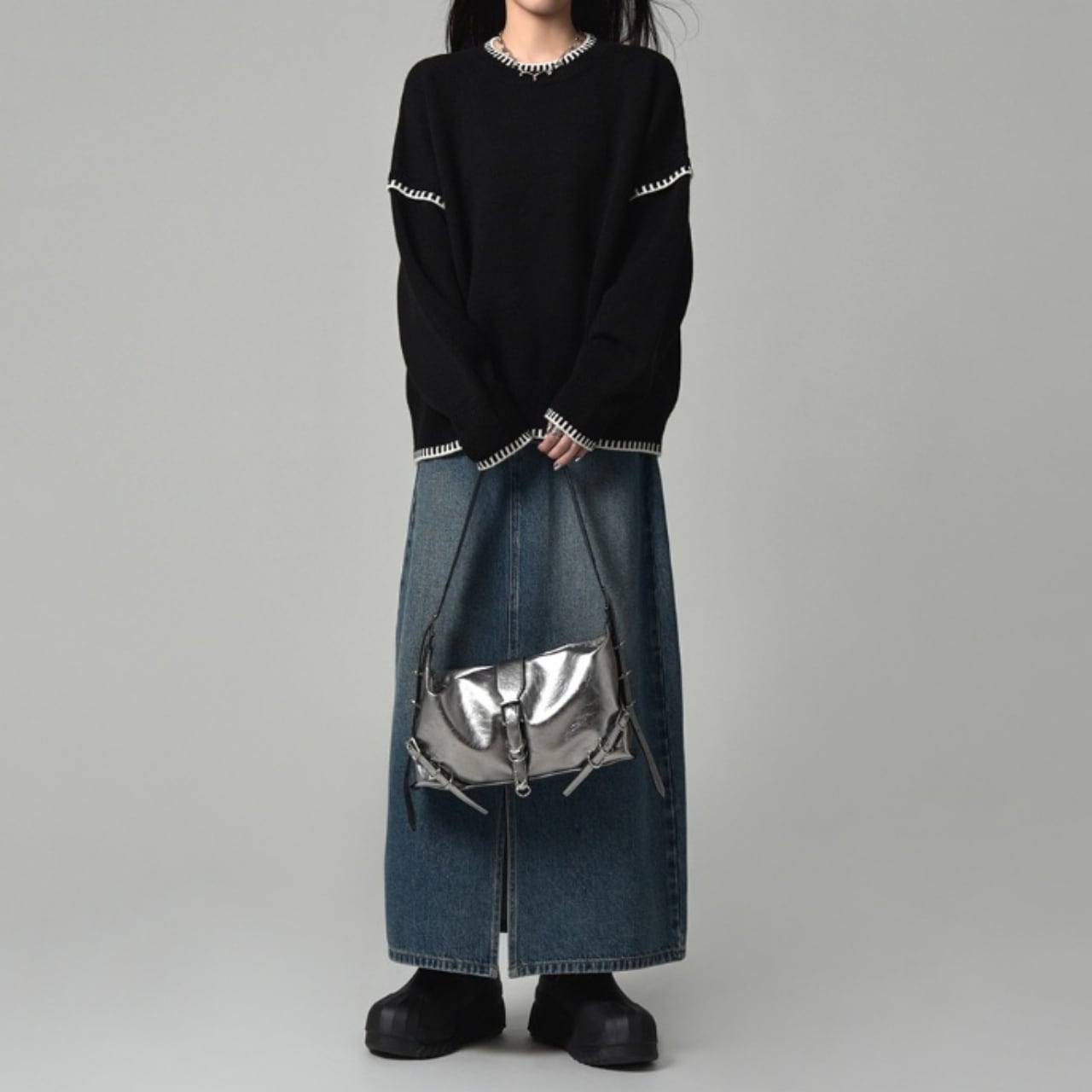 ハンドステッチカラーブロッククドロップショルダーニット A01963