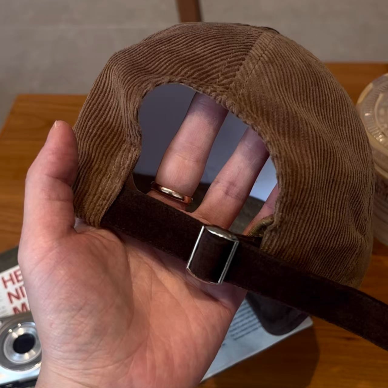 温かみのあるコーデュロイ素材とバイカラーのツバが、周りと差をつけるデザイン。