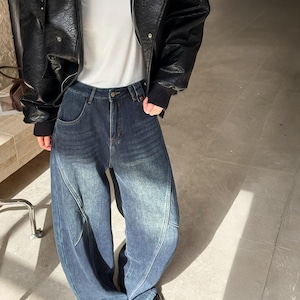 フリースライニングデコンストラクトカーブデニムパンツ A01974