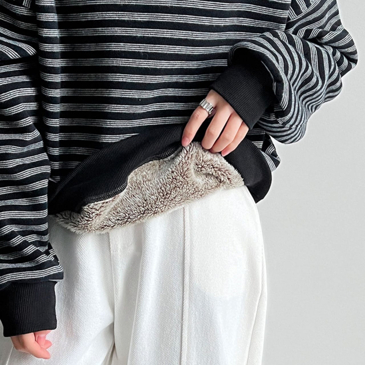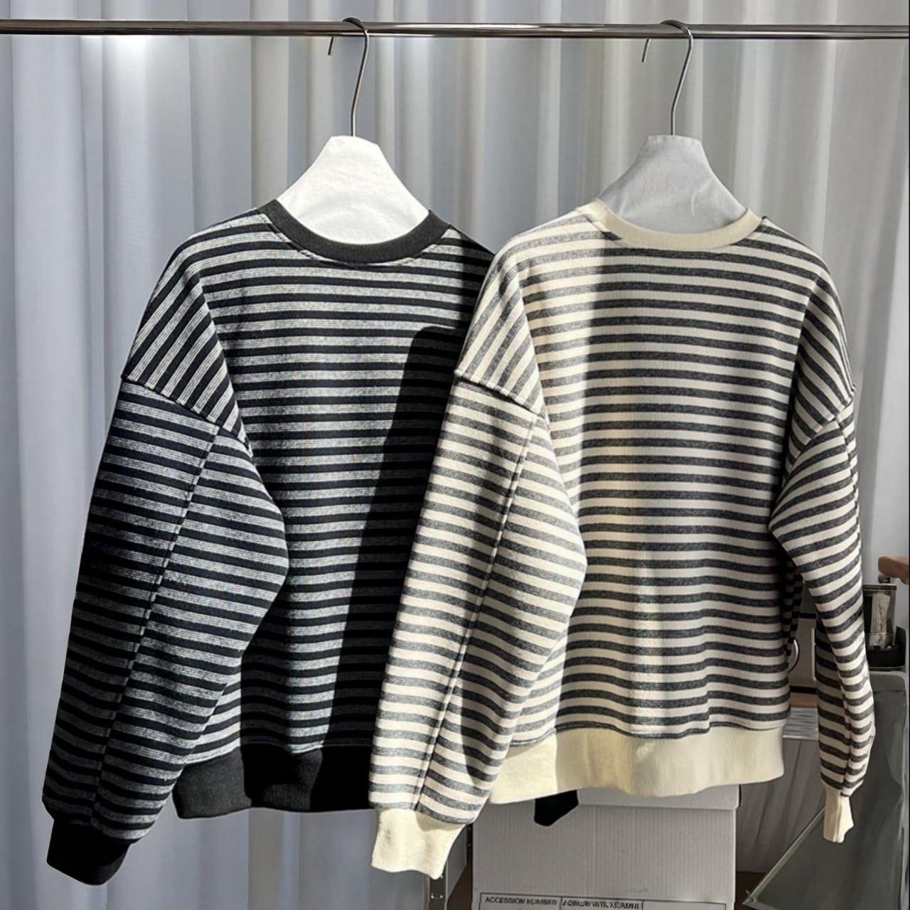 ルーズシルエットボーダーフリースライニングスウェット A01976