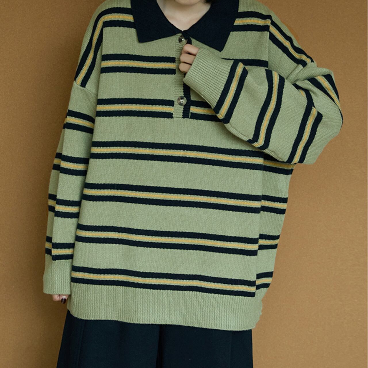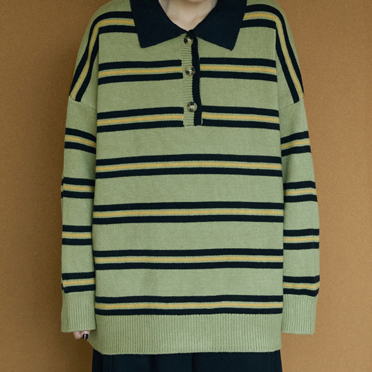 ポロカラーマルチボーダーニットプルオーバー A01981