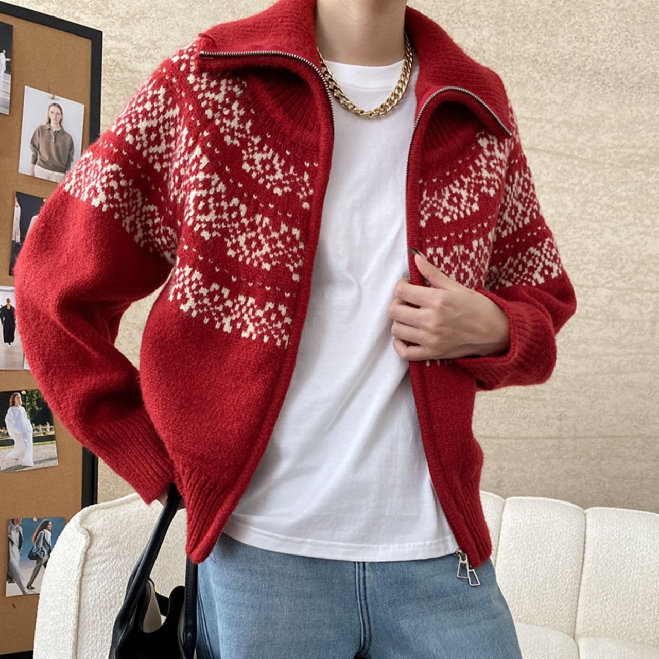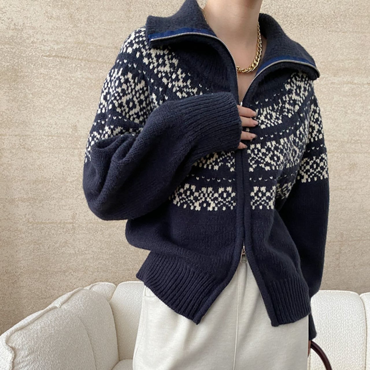 ジャガード編みが冬らしいクラシックな雰囲気を演出。