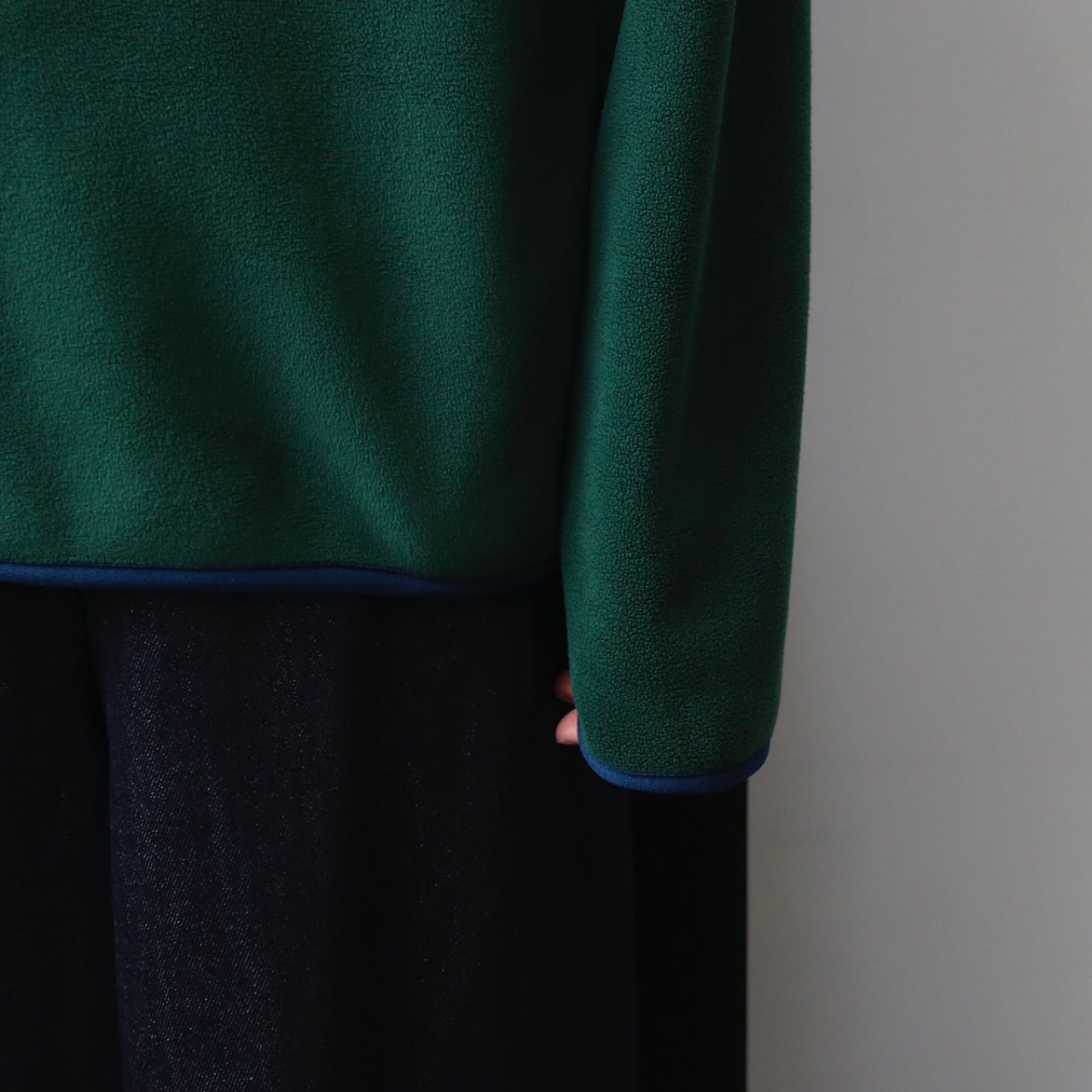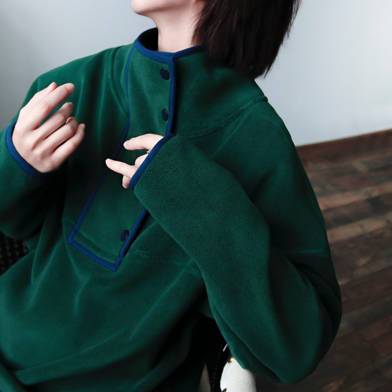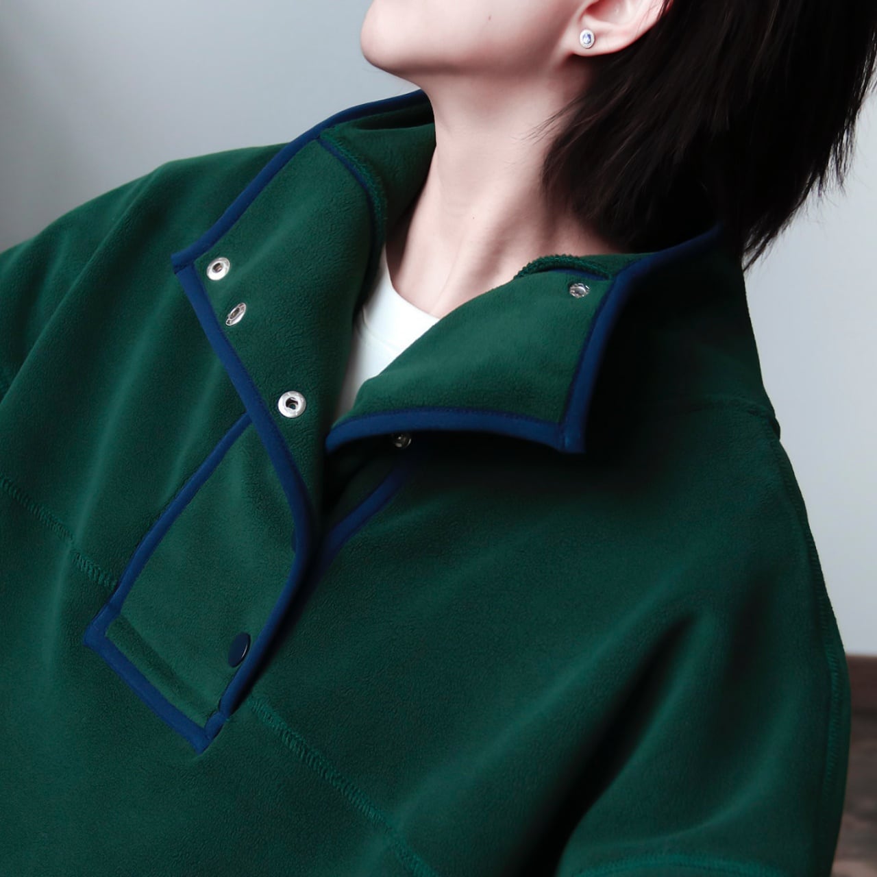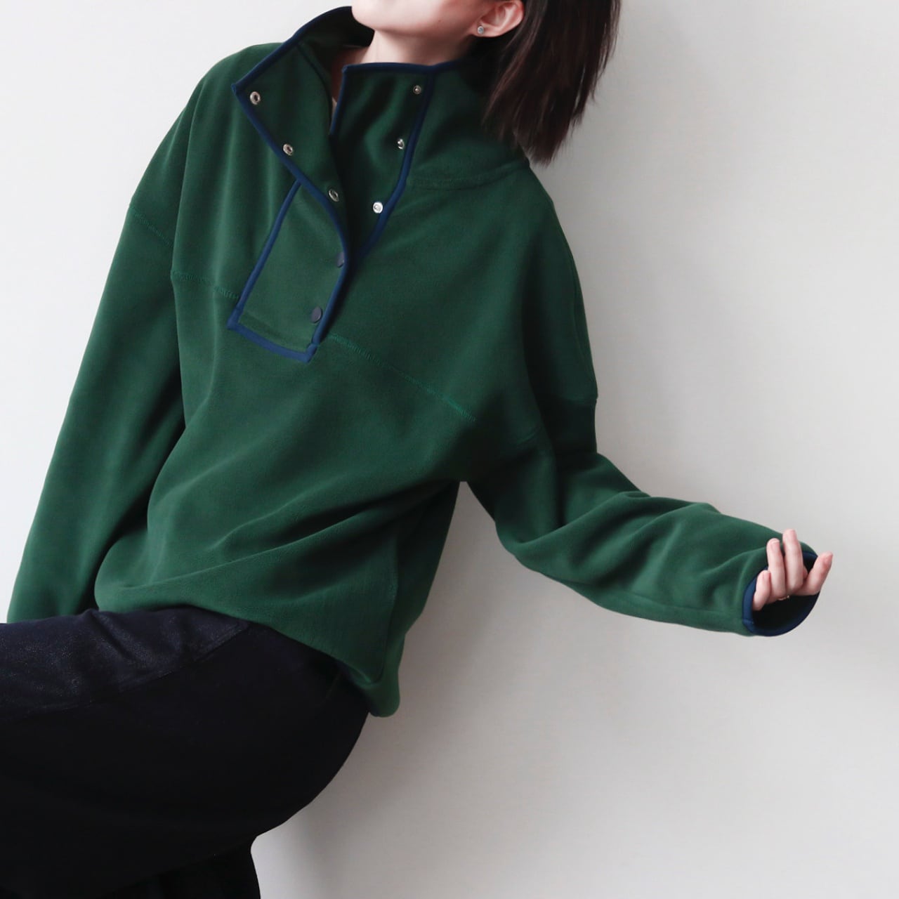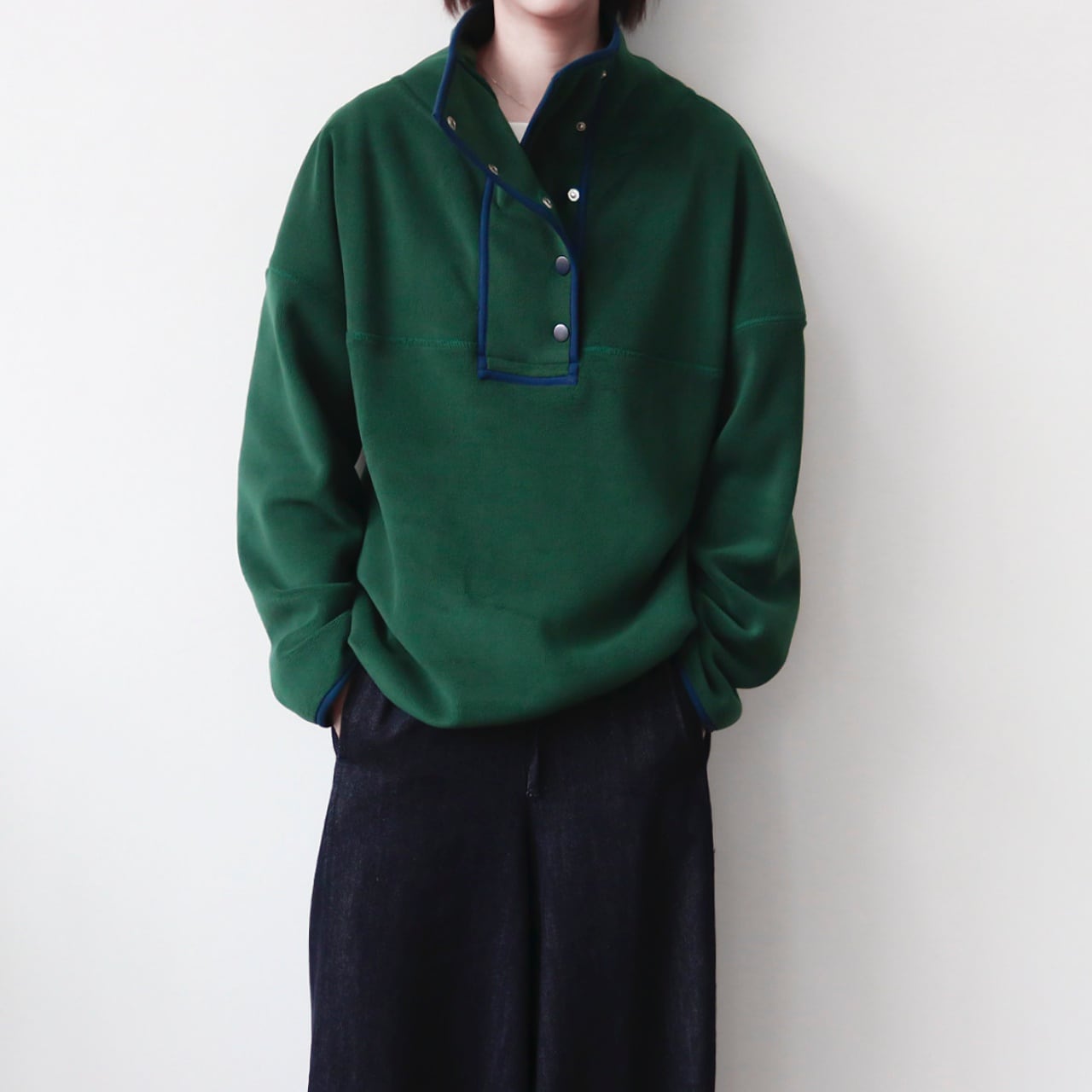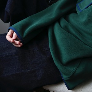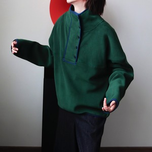 スナップボタンスタンドカラーパイピングフリースプルオーバー A01990