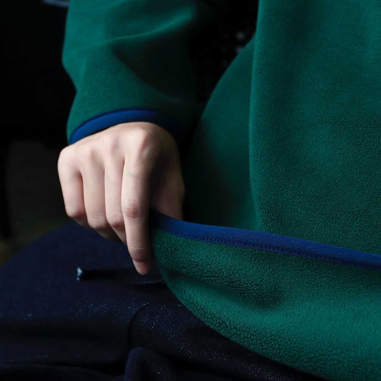配色パイピングがアクセントを添える、スポーツMIXなフリース。