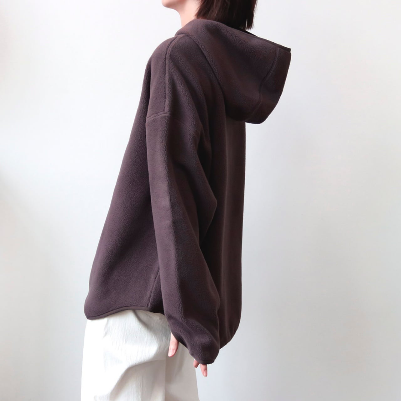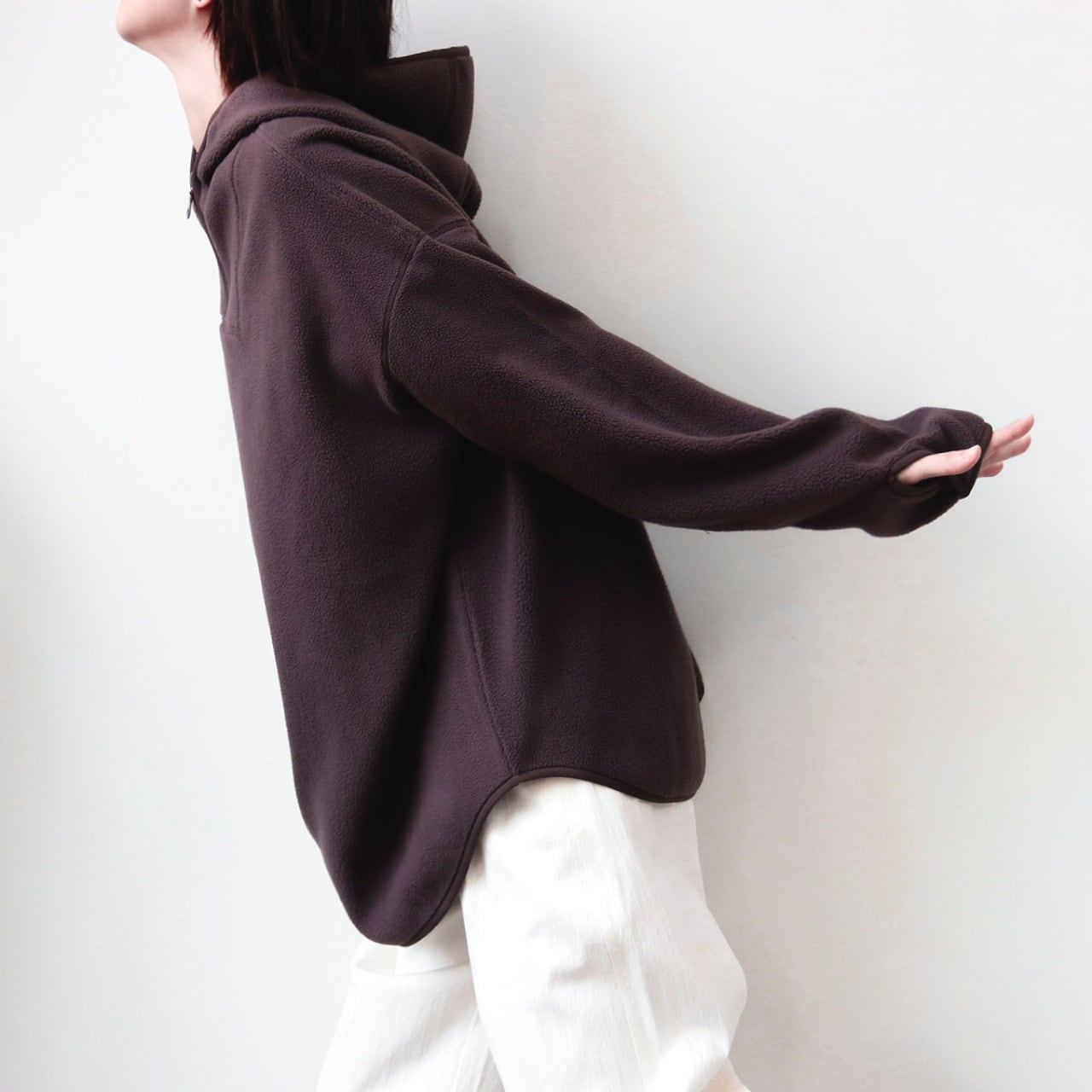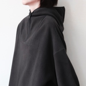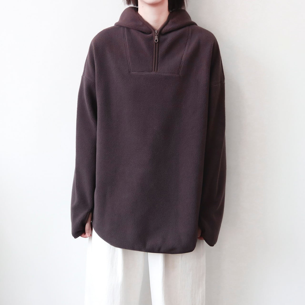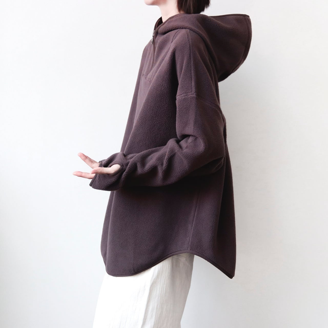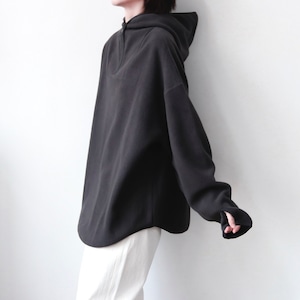 ルーズシルエットハーフジップカーブスリットフリースフーディー A01991