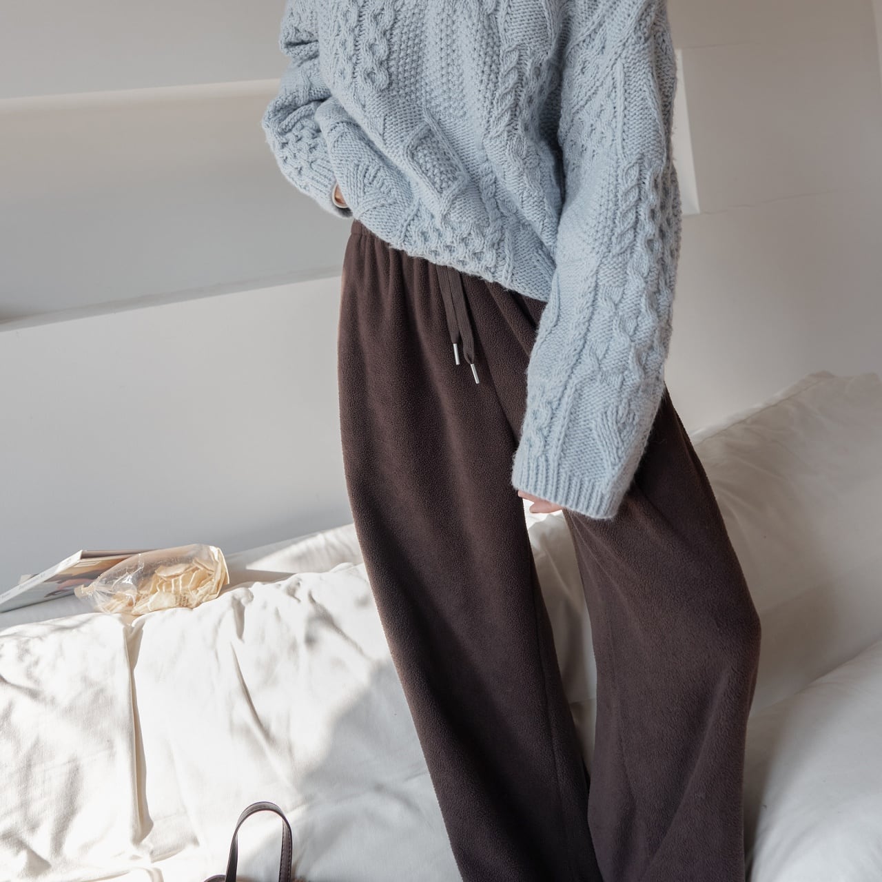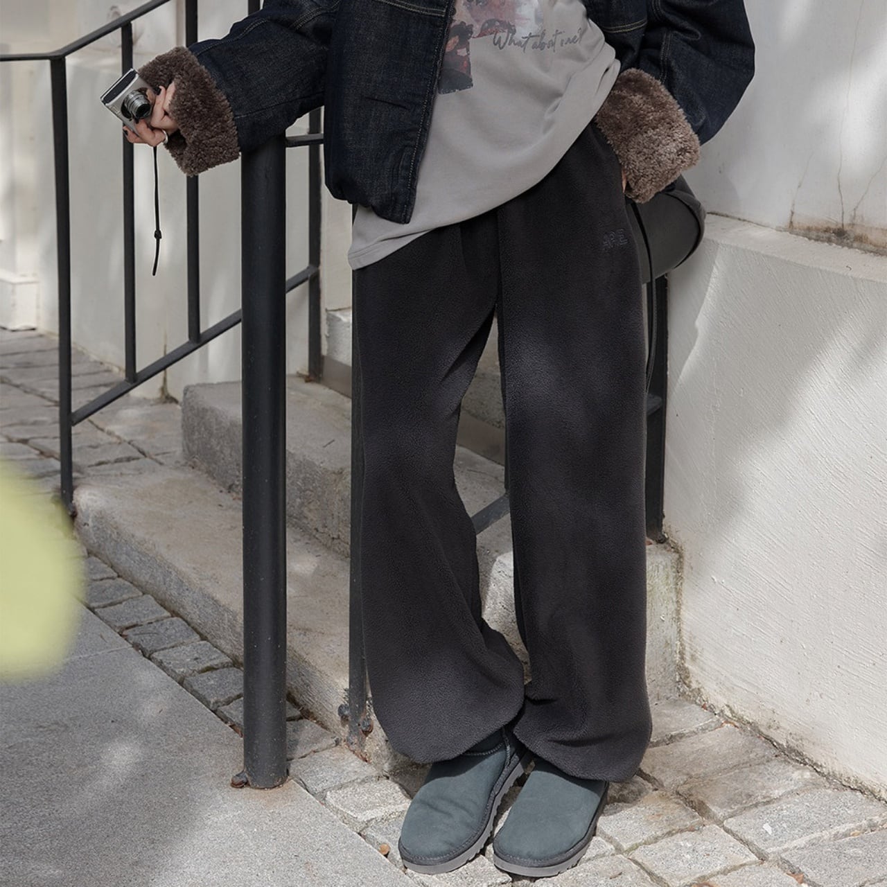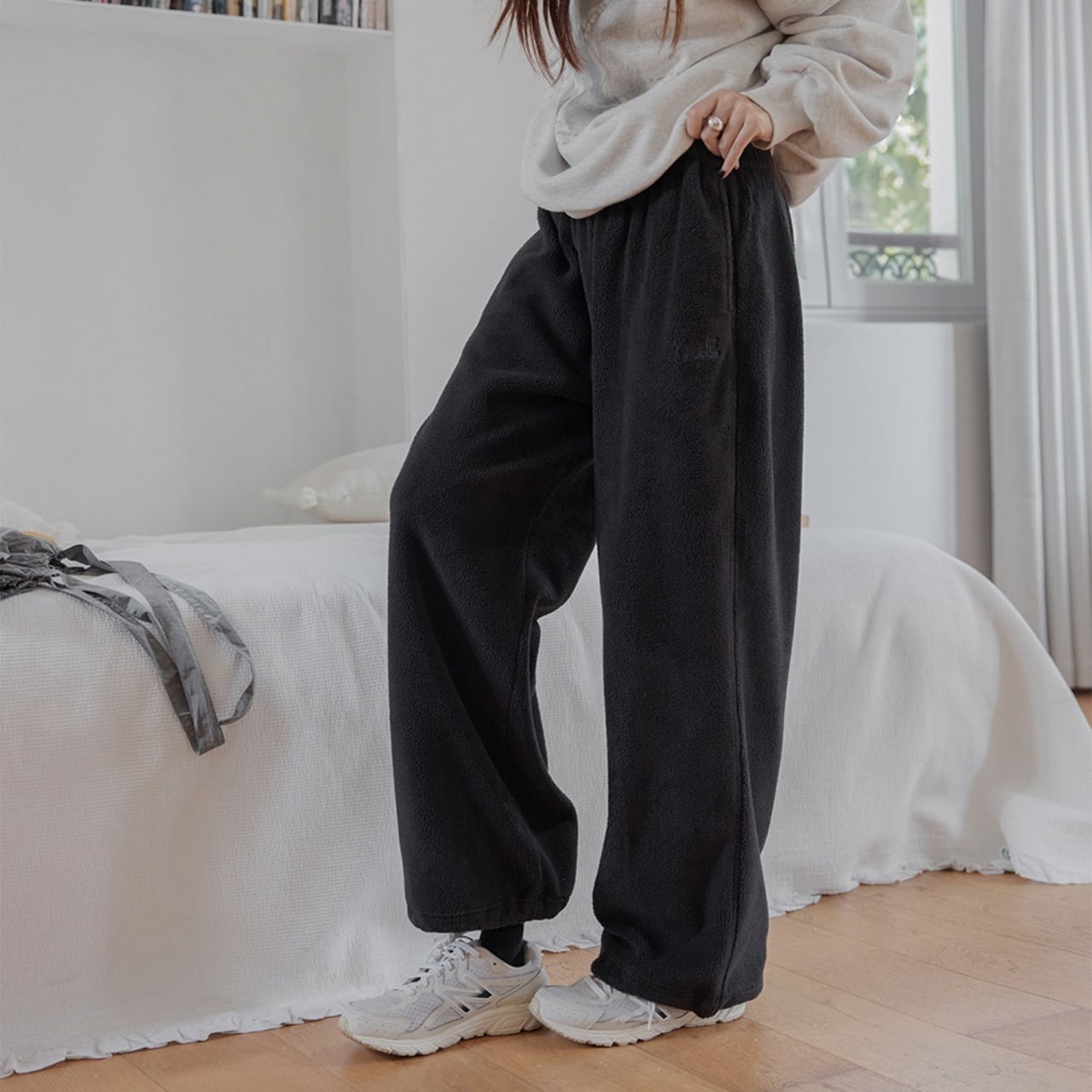 柔らかく暖かなフリース素材を使用した、リラックス感たっぷりのイージーパンツ。