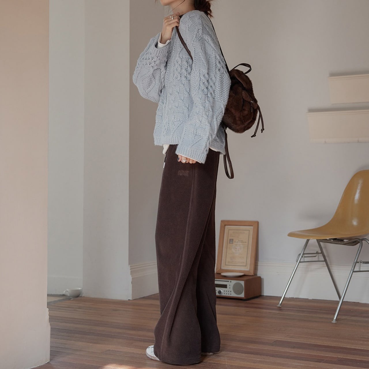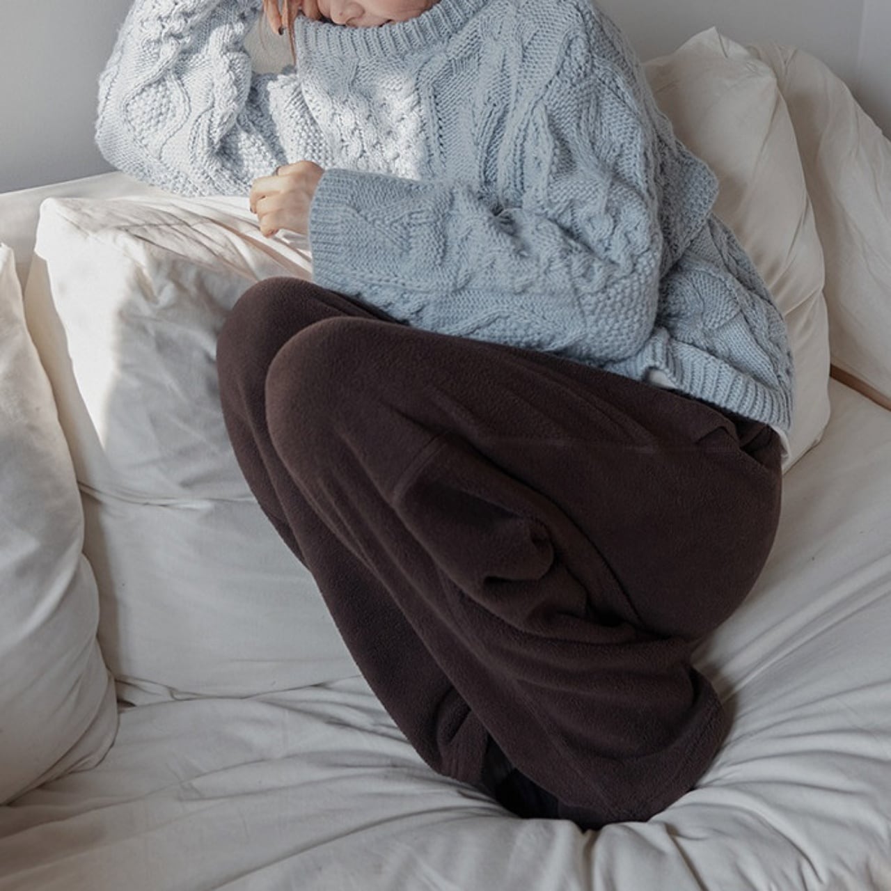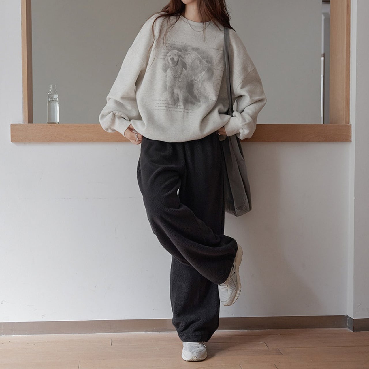 柔らかく暖かなフリース素材を使用した、リラックス感たっぷりのイージーパンツ。