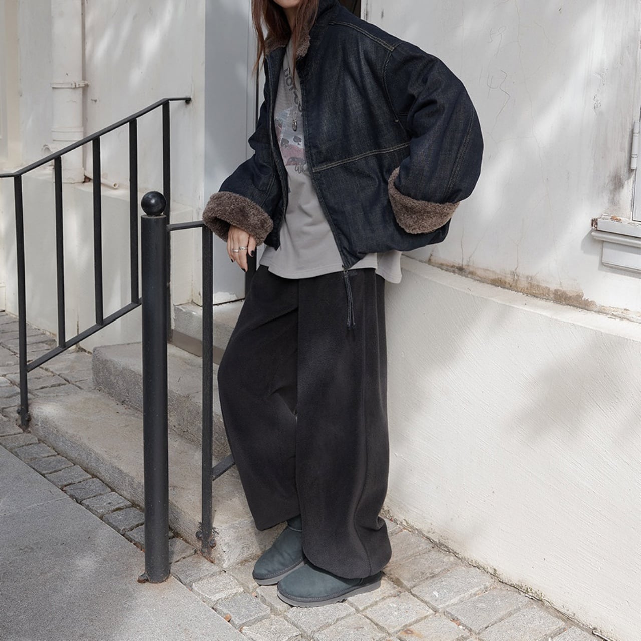 ロゴエンブロイダリーフリースワイドイージーパンツ A01996