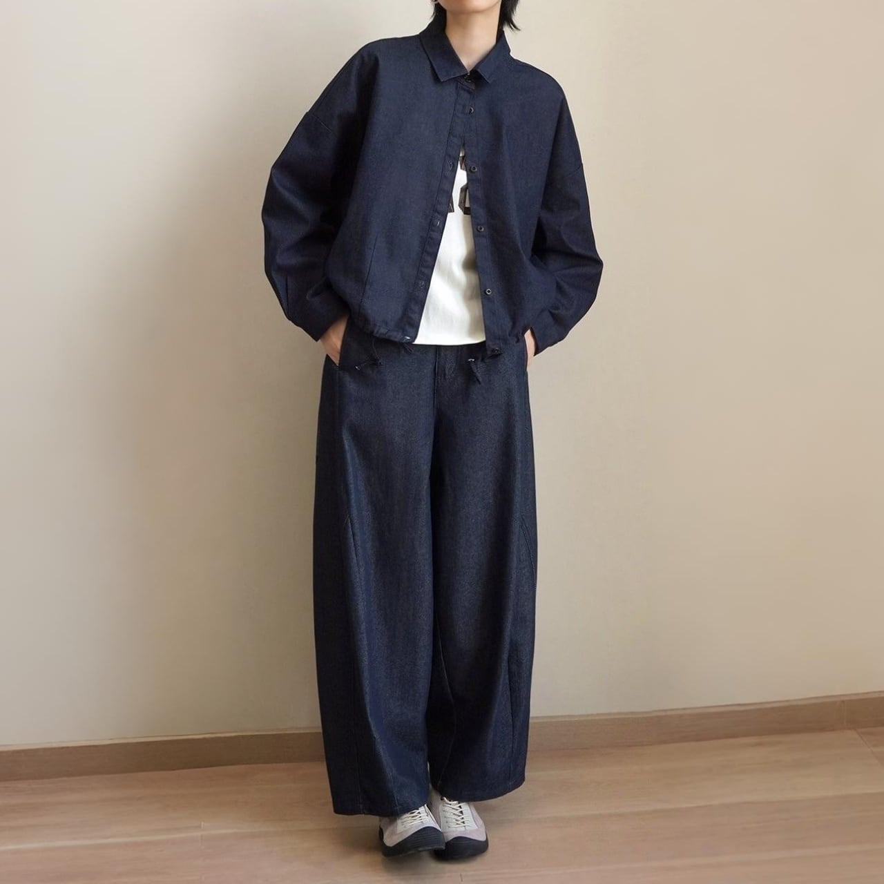 コクーンワイドレッグデニムパンツ A02001